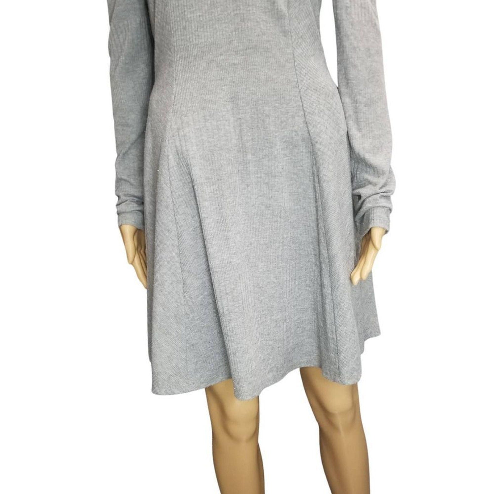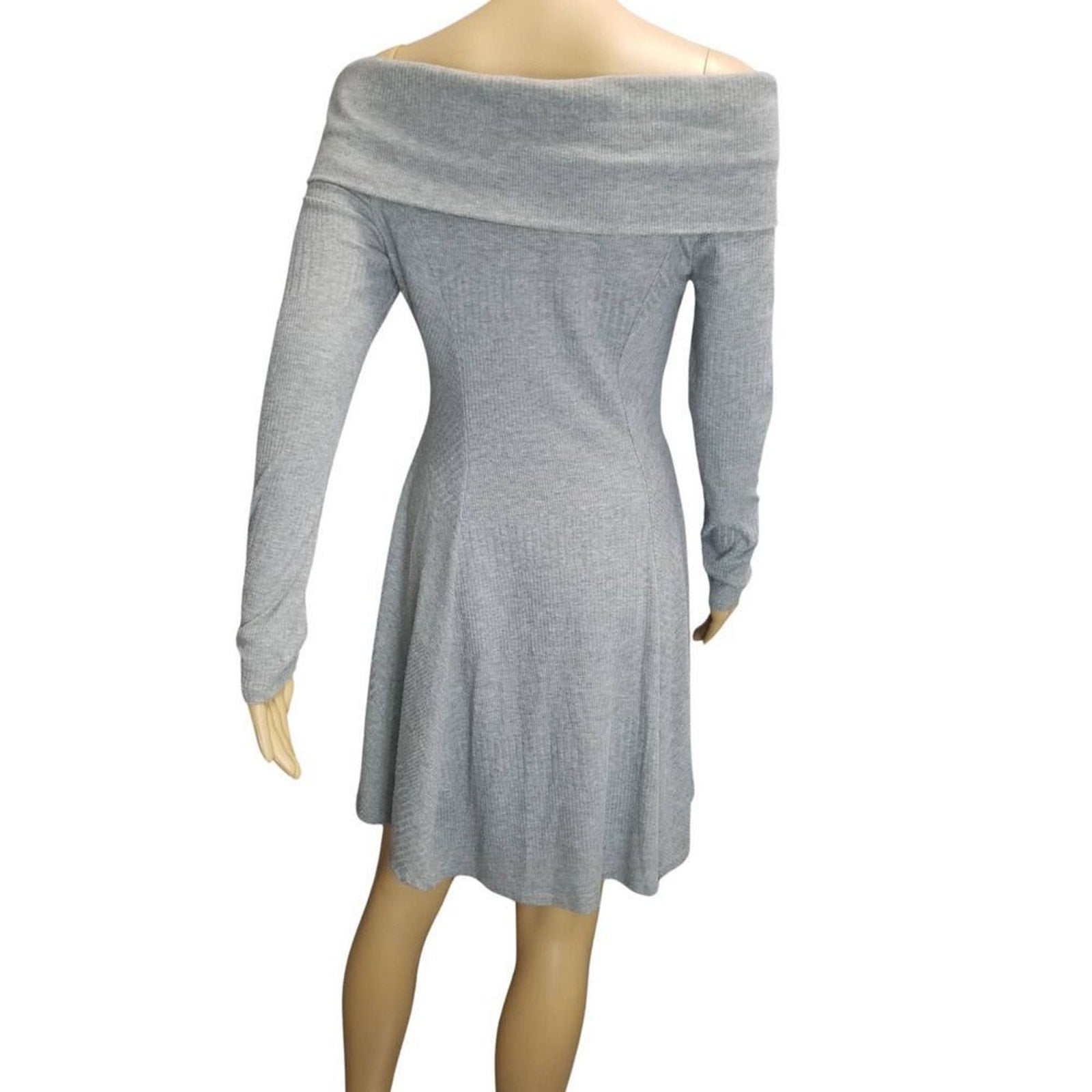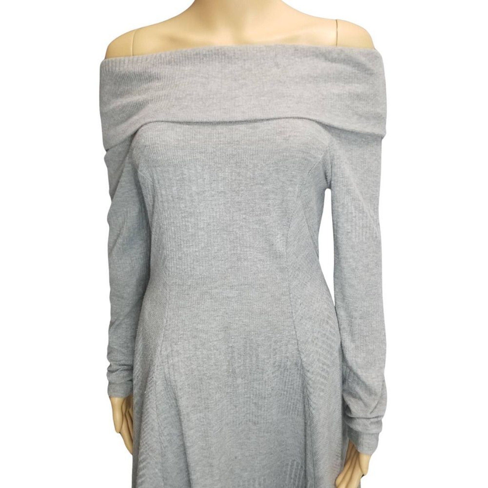 Gray Off The Shoulder Fit & Flare Long Sleeve Ribbed Knee High Dress Size Medium