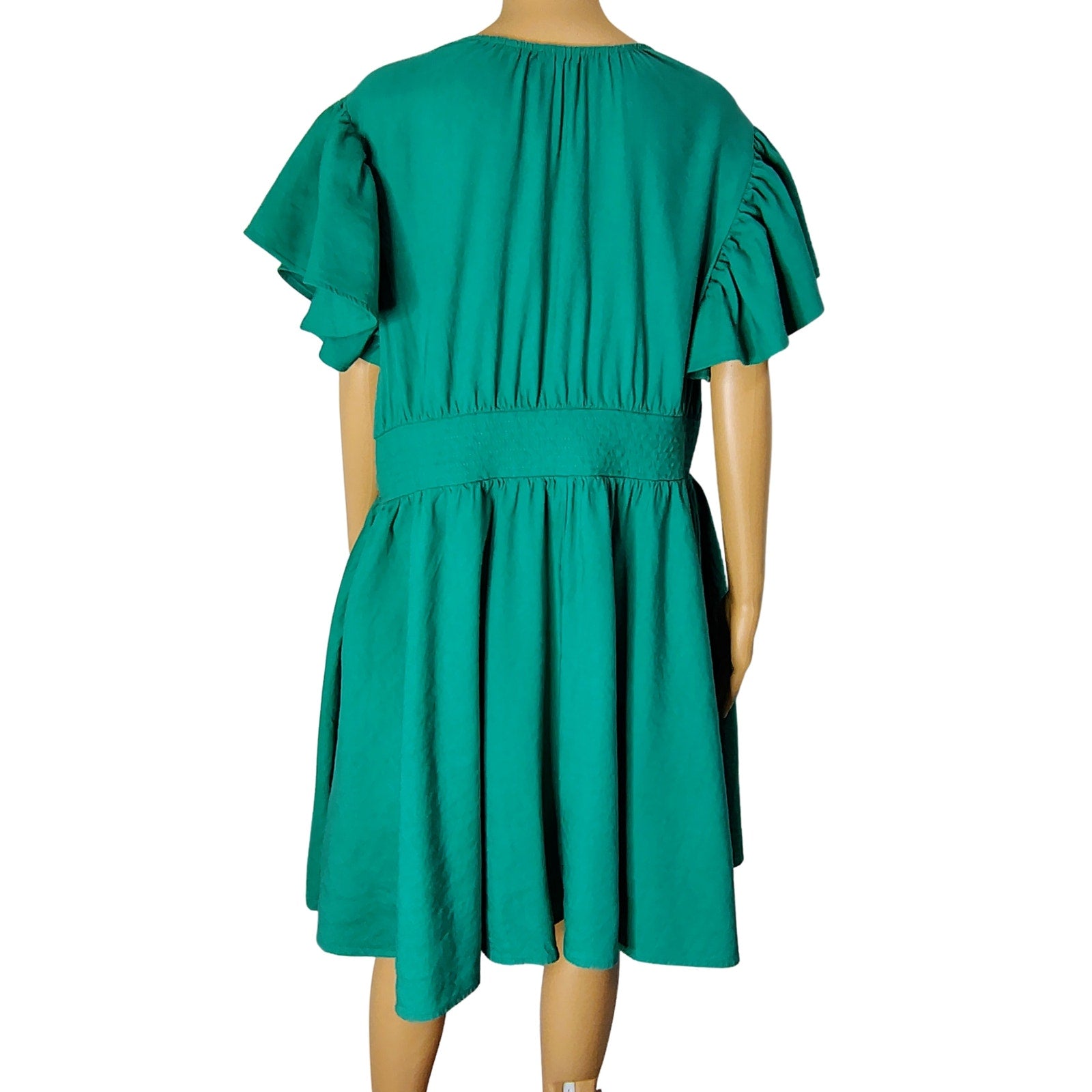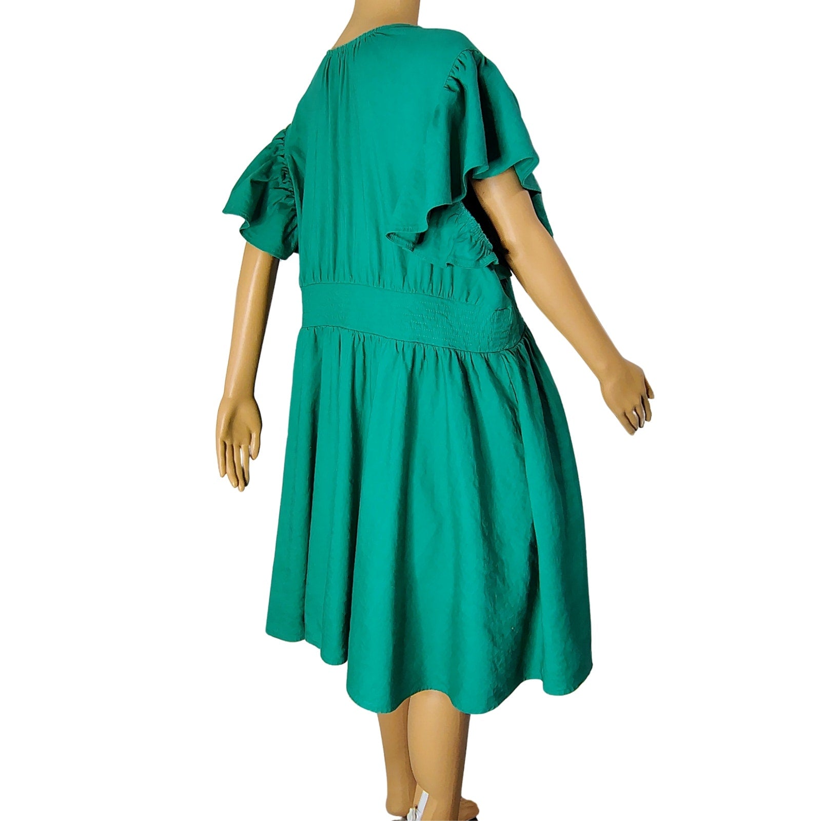 Green Nordstrom Chelsea 28 Fit & Flare Midi Short Ruffle Cap Sleeve Dress Size 2X