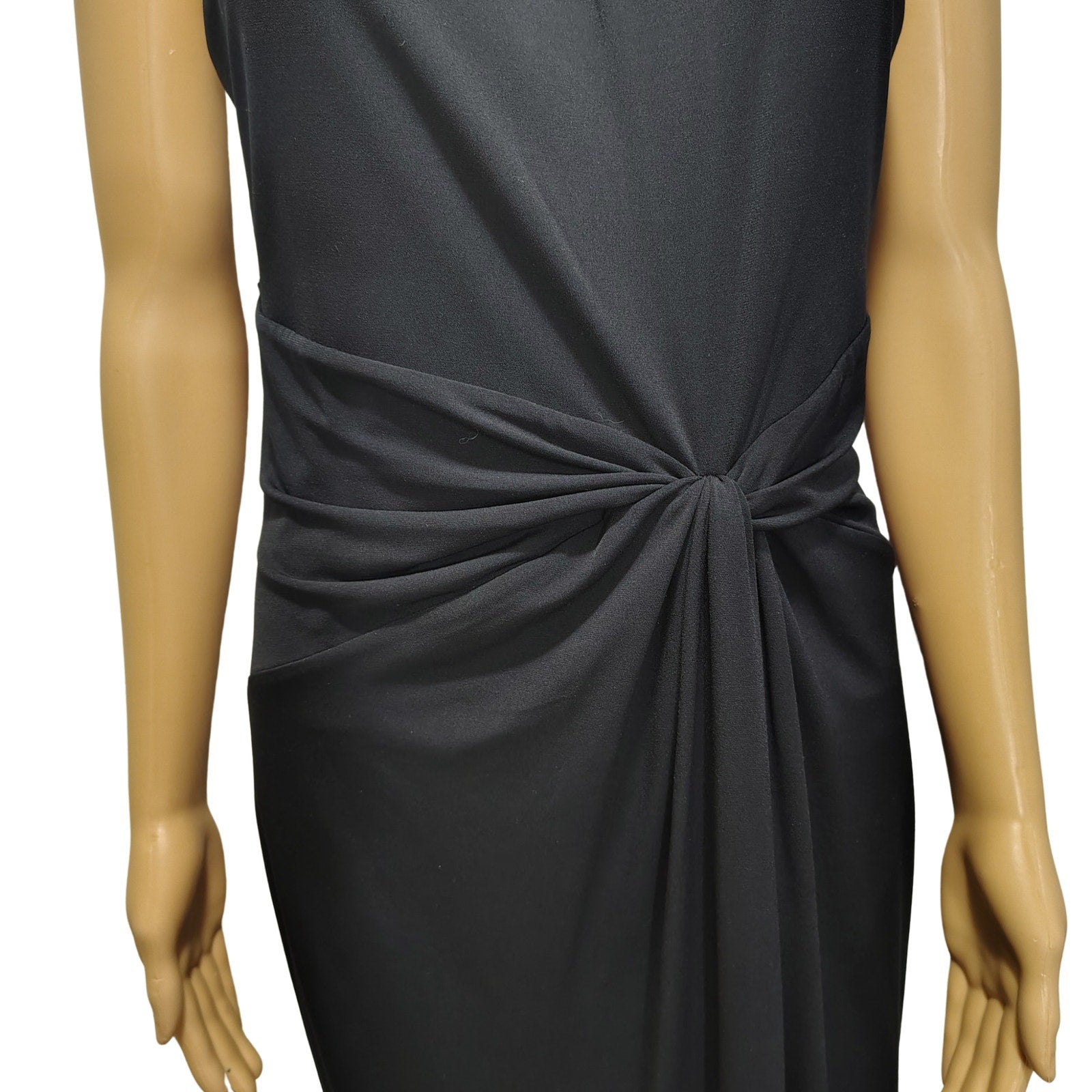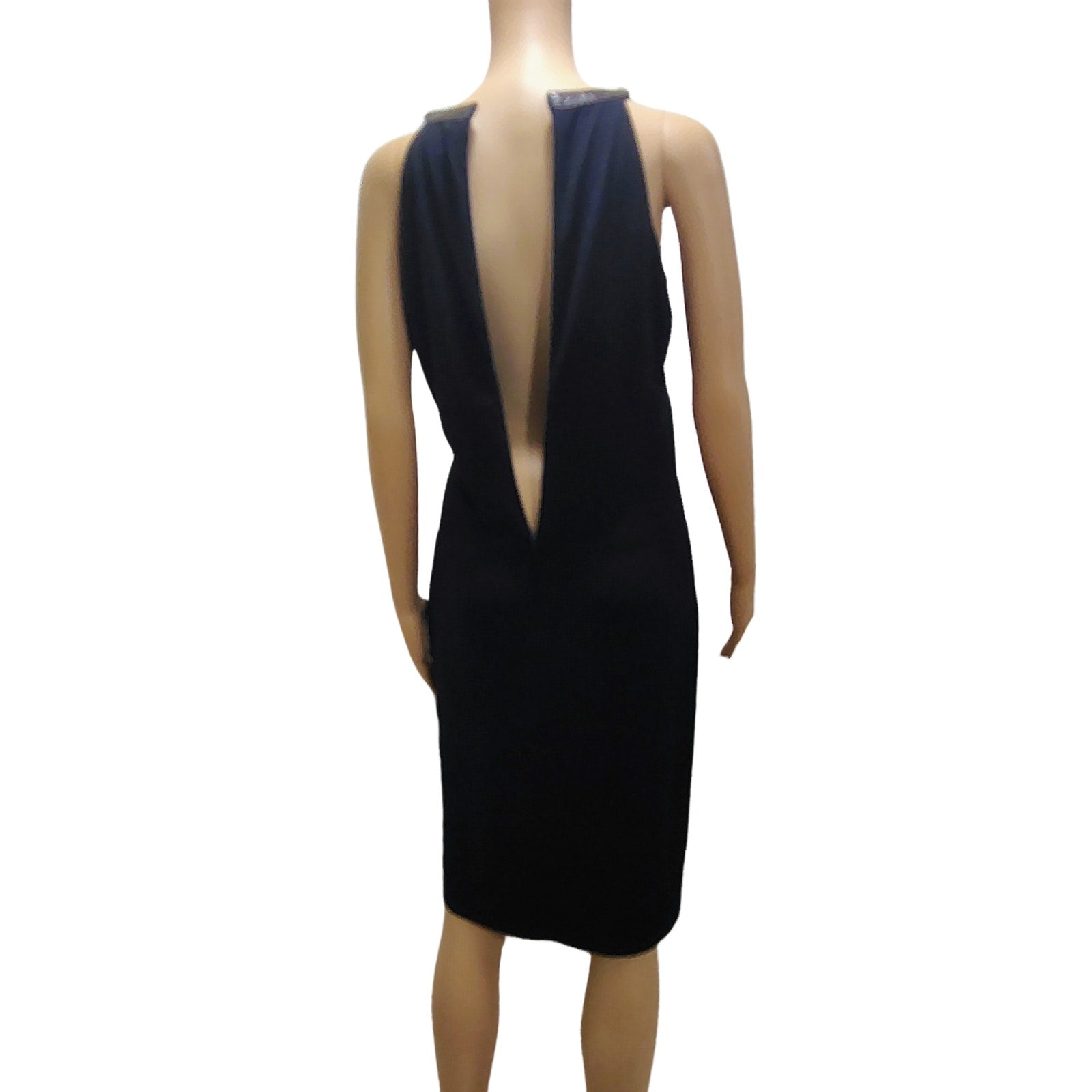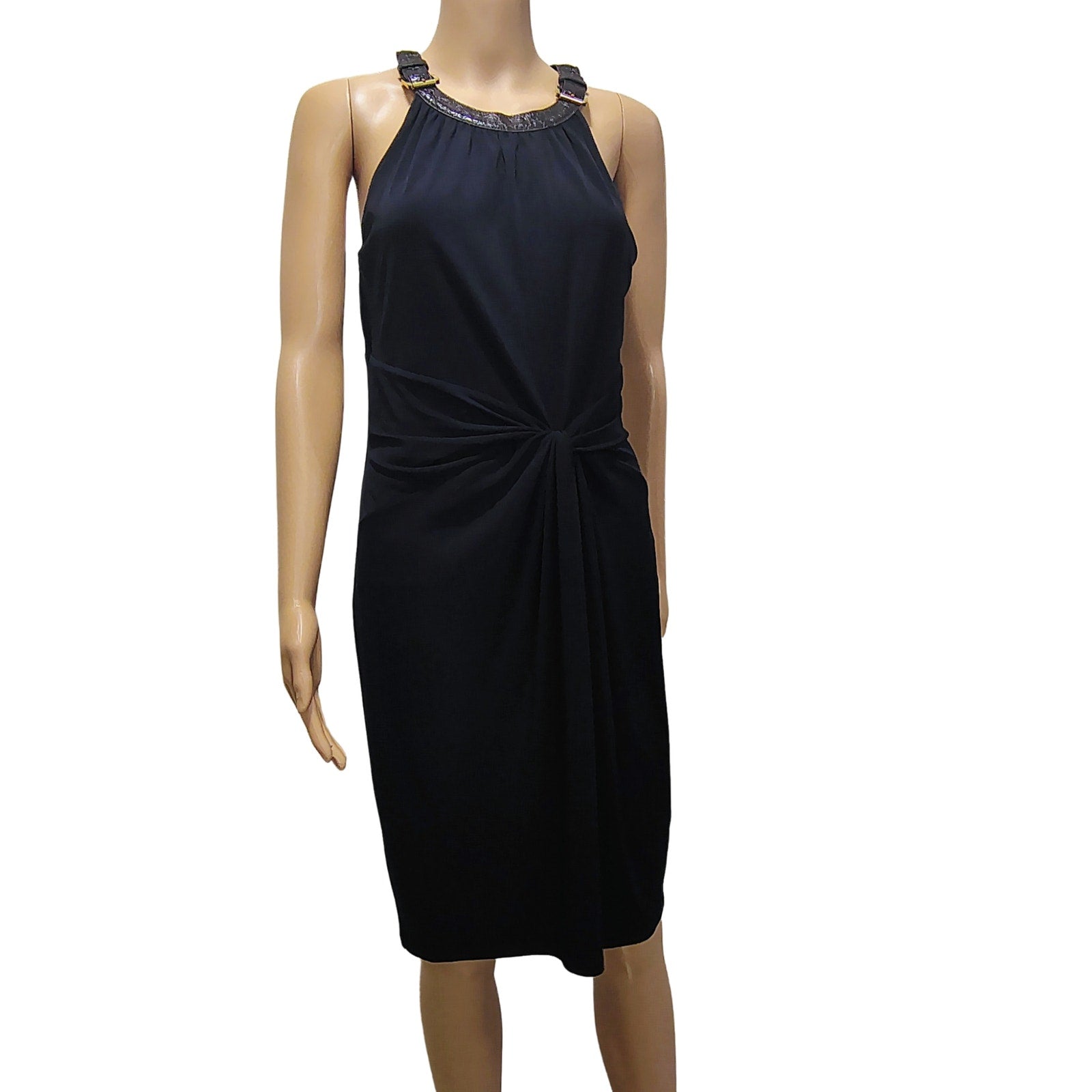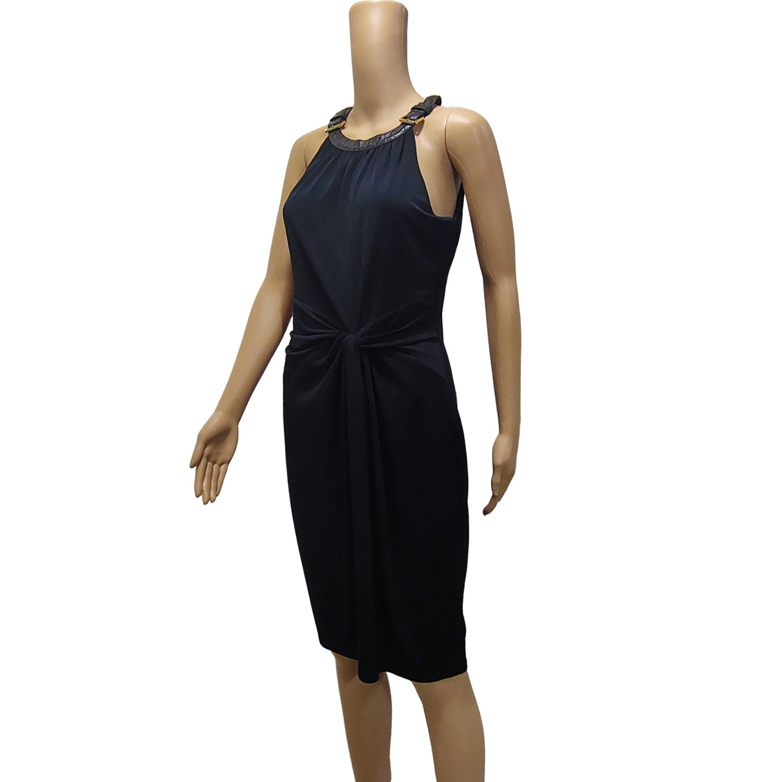 Halter Brown Leather Collar Black Bodycon Midi Dress Ruched Michael Kors SZ M