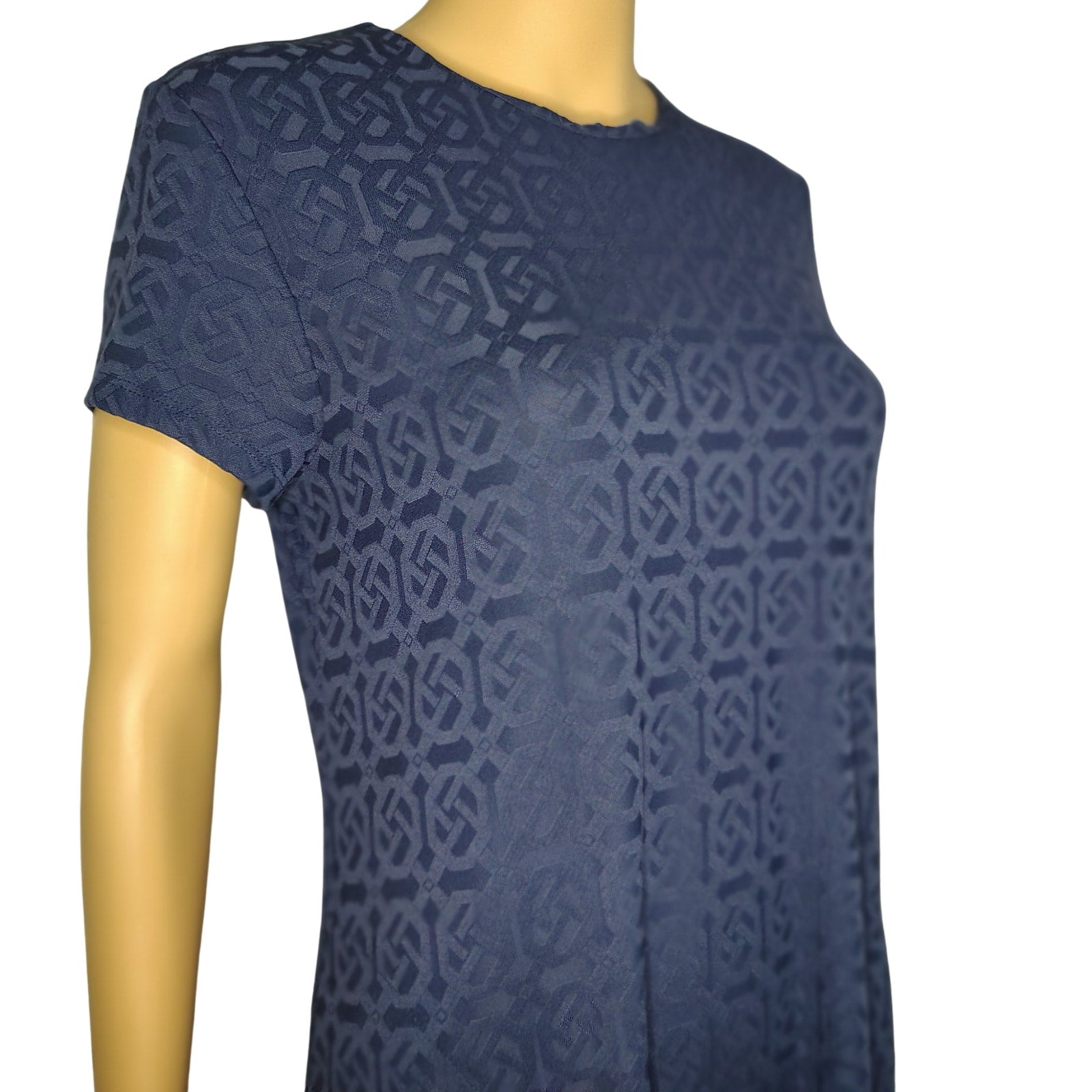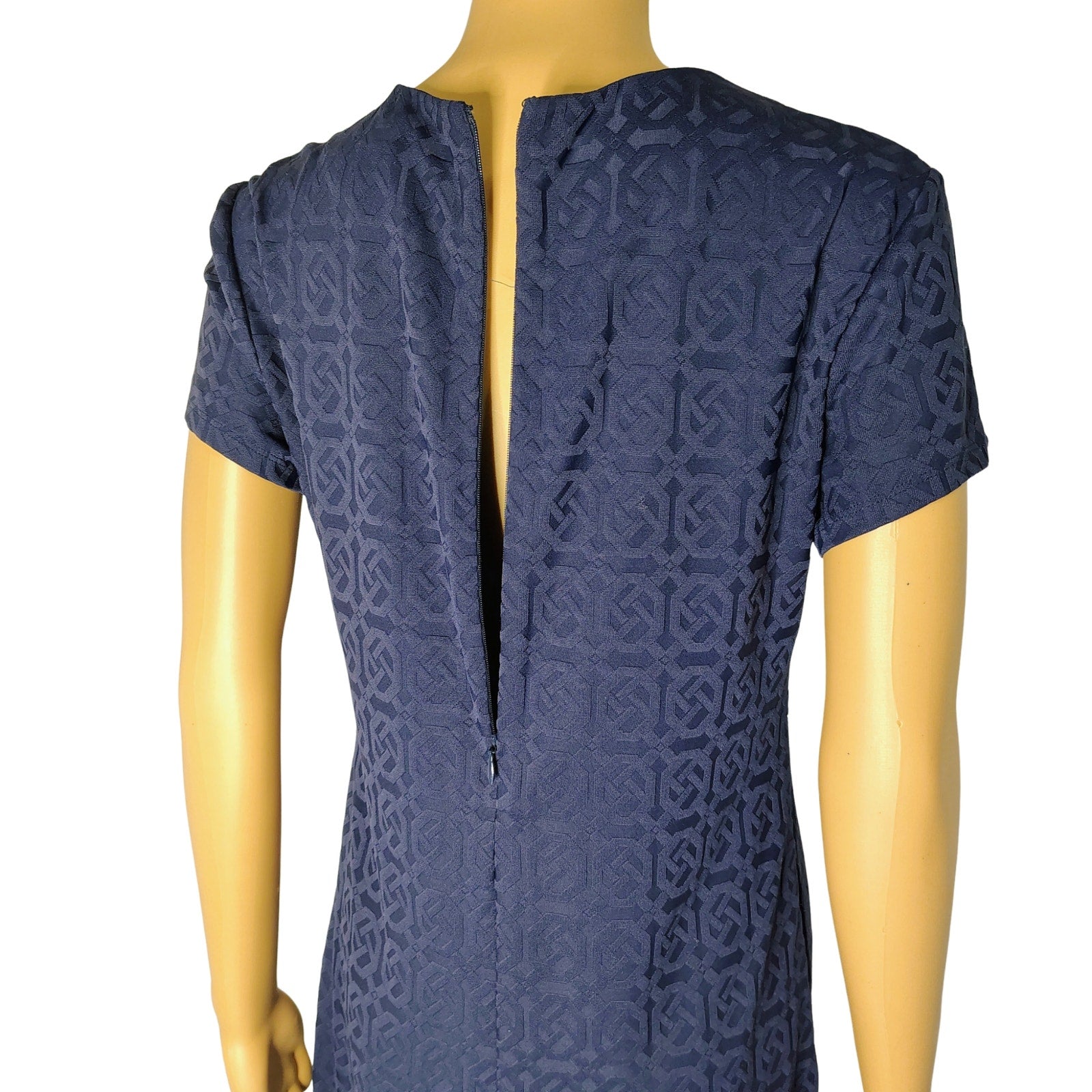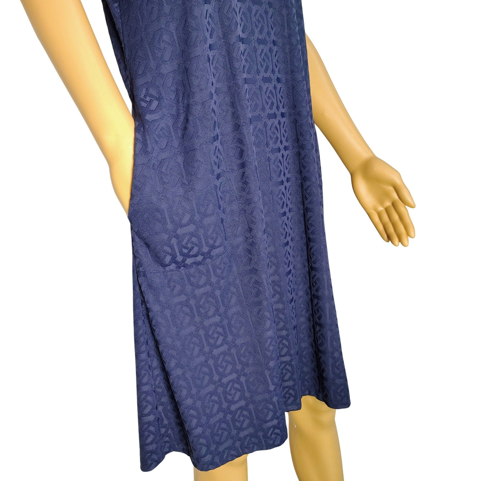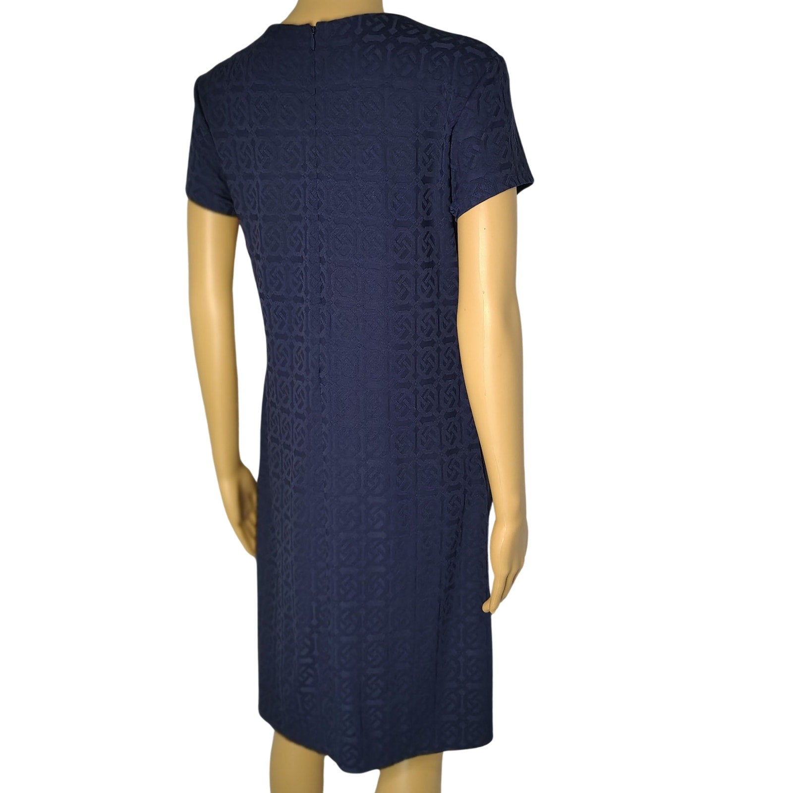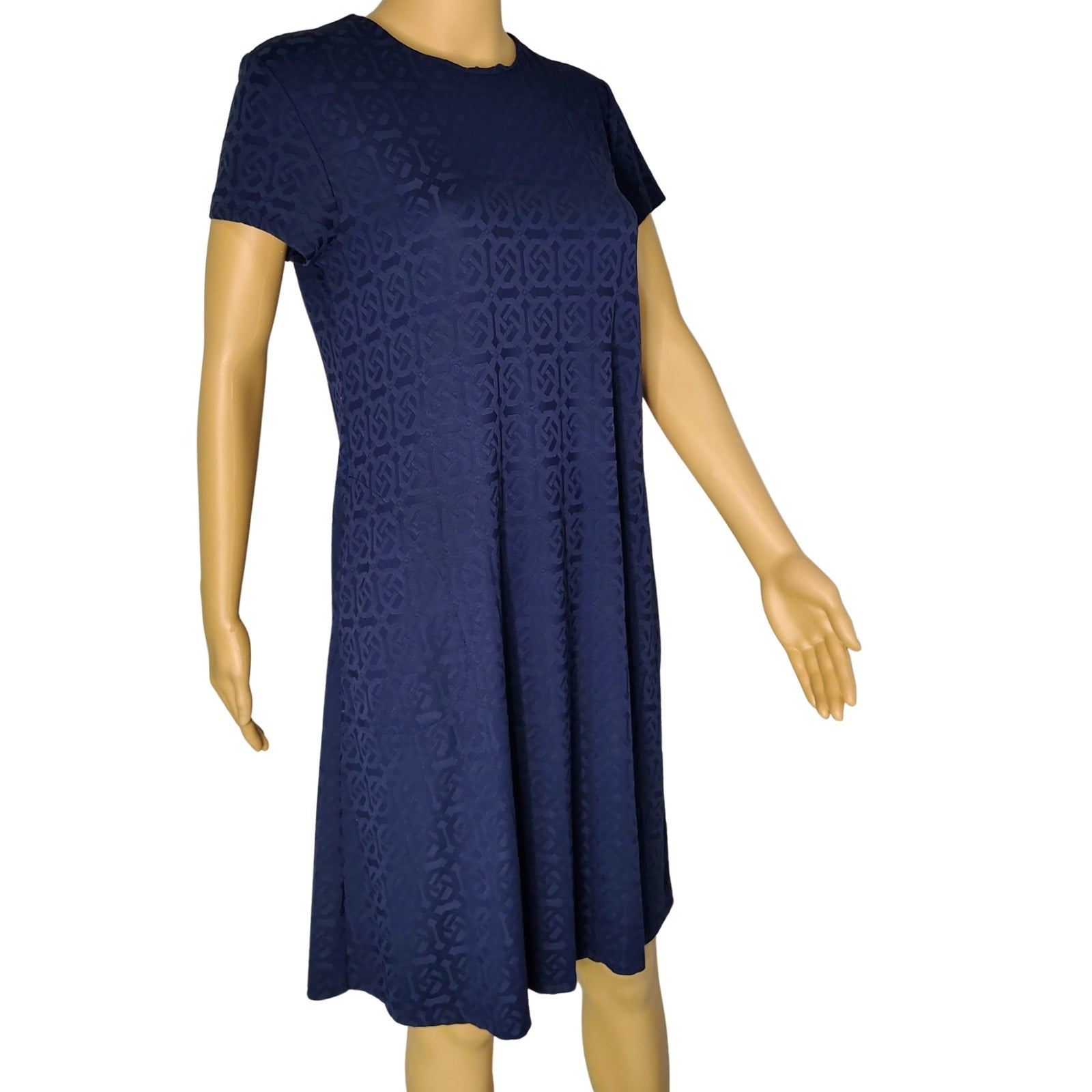 J. McLaughlin Swing Dress in Knot Print Jacquard Short Sleeve Navy Blue Size Small