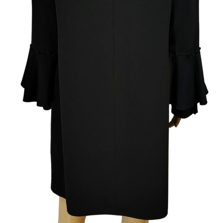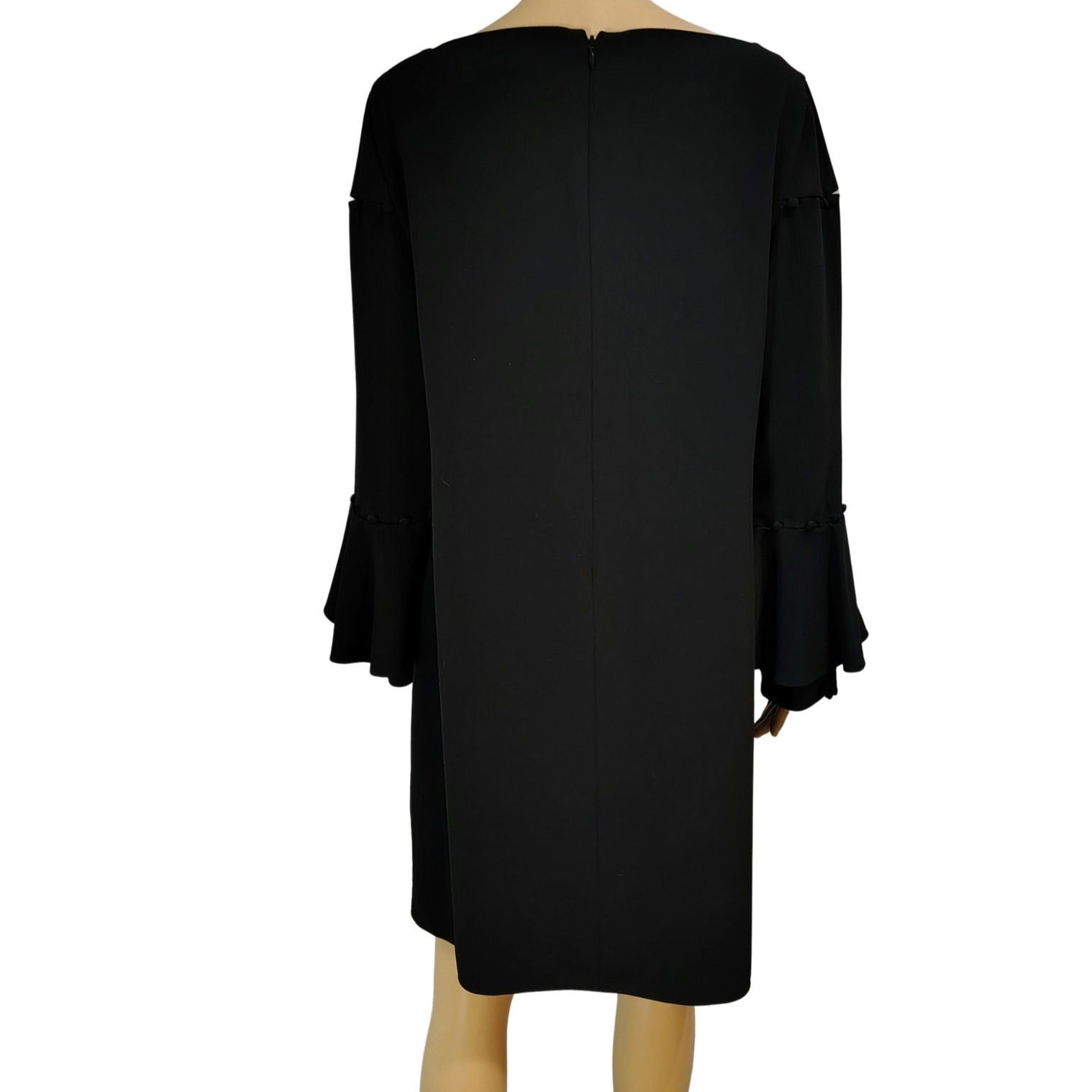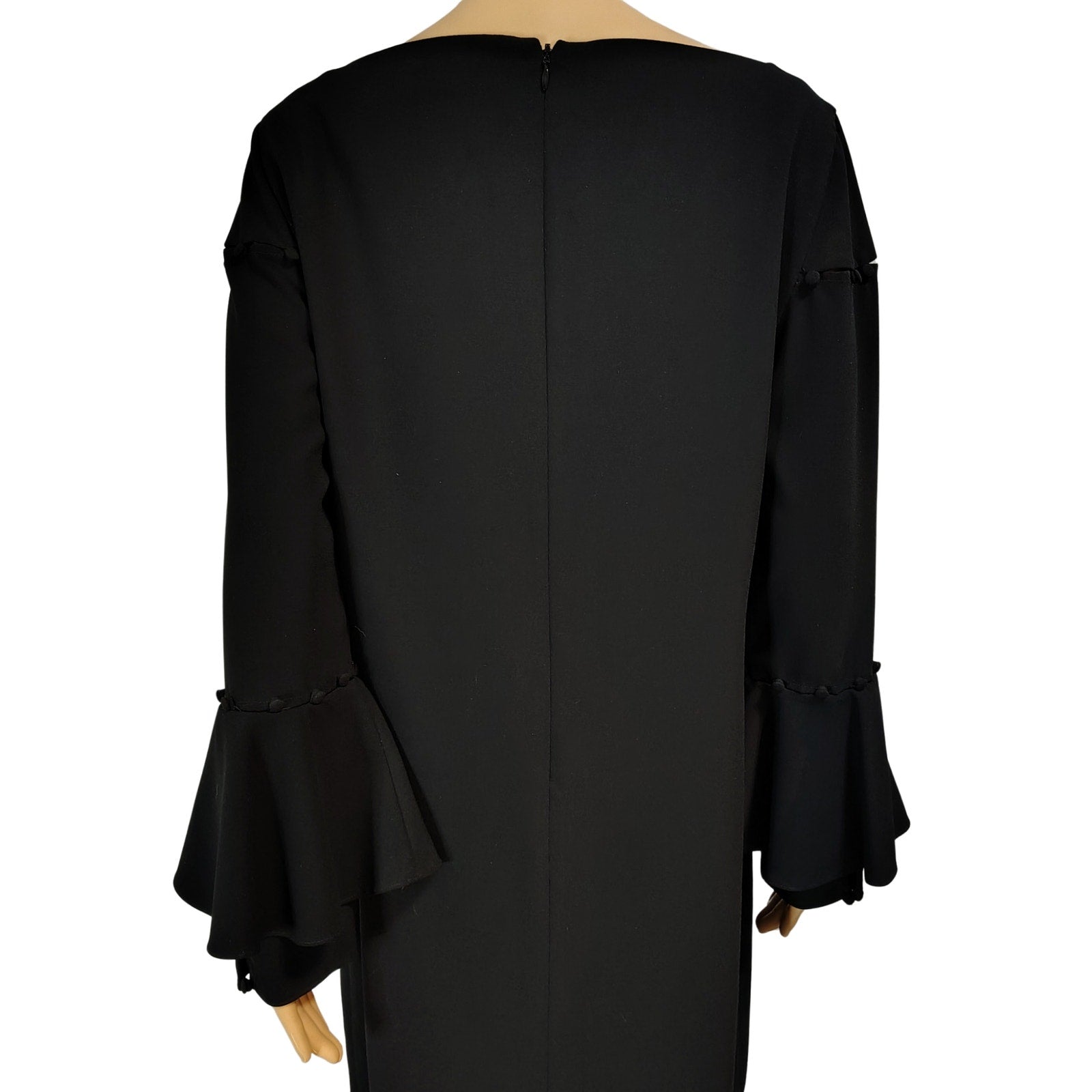 Laundry Shelli Segal Black Midi Dress Ruffled Flare Sleeves Pom Cut Out Size 12
