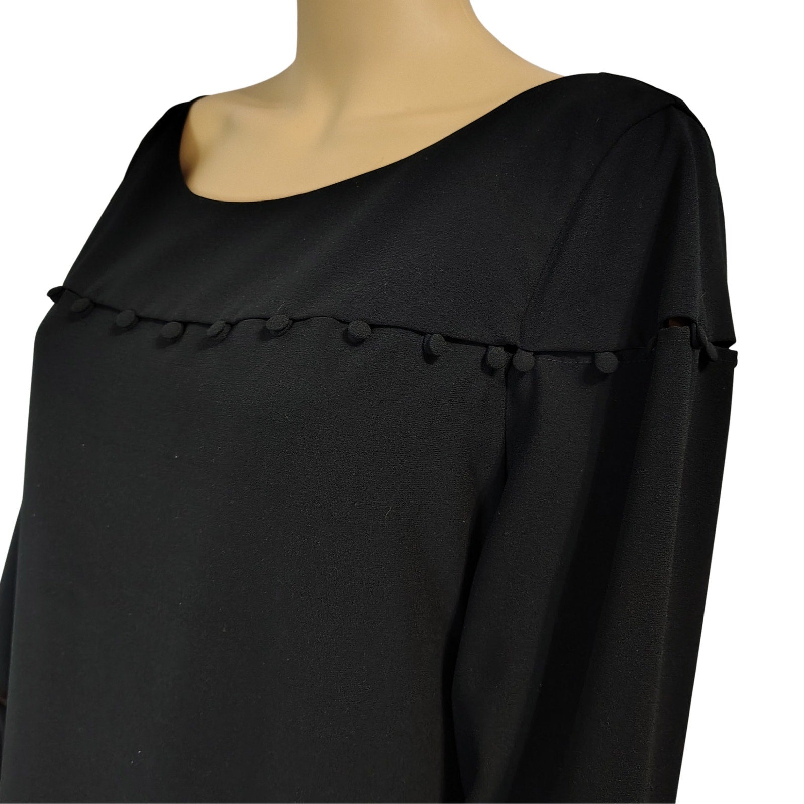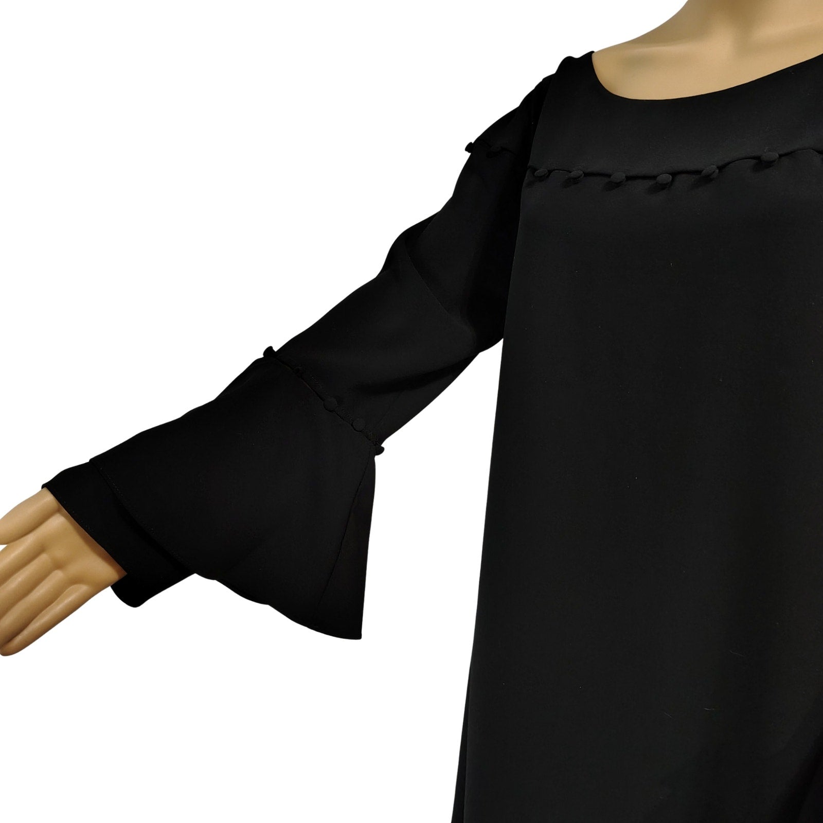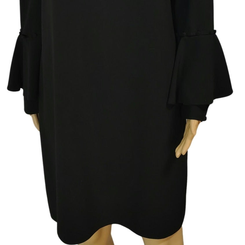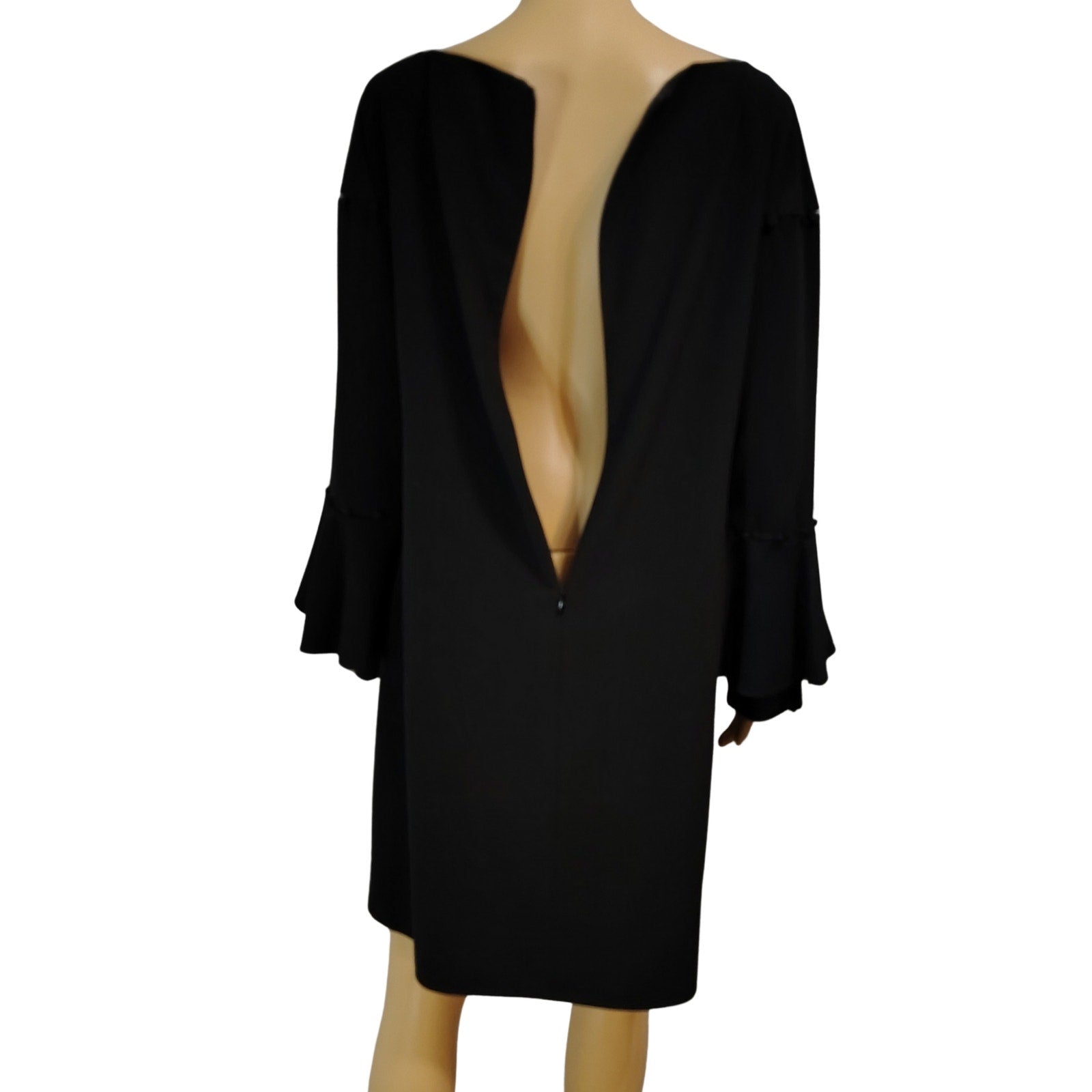 Laundry Shelli Segal Black Midi Dress Ruffled Flare Sleeves Pom Cut Out Size 12