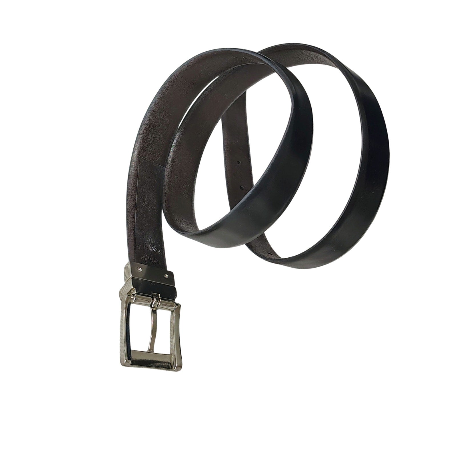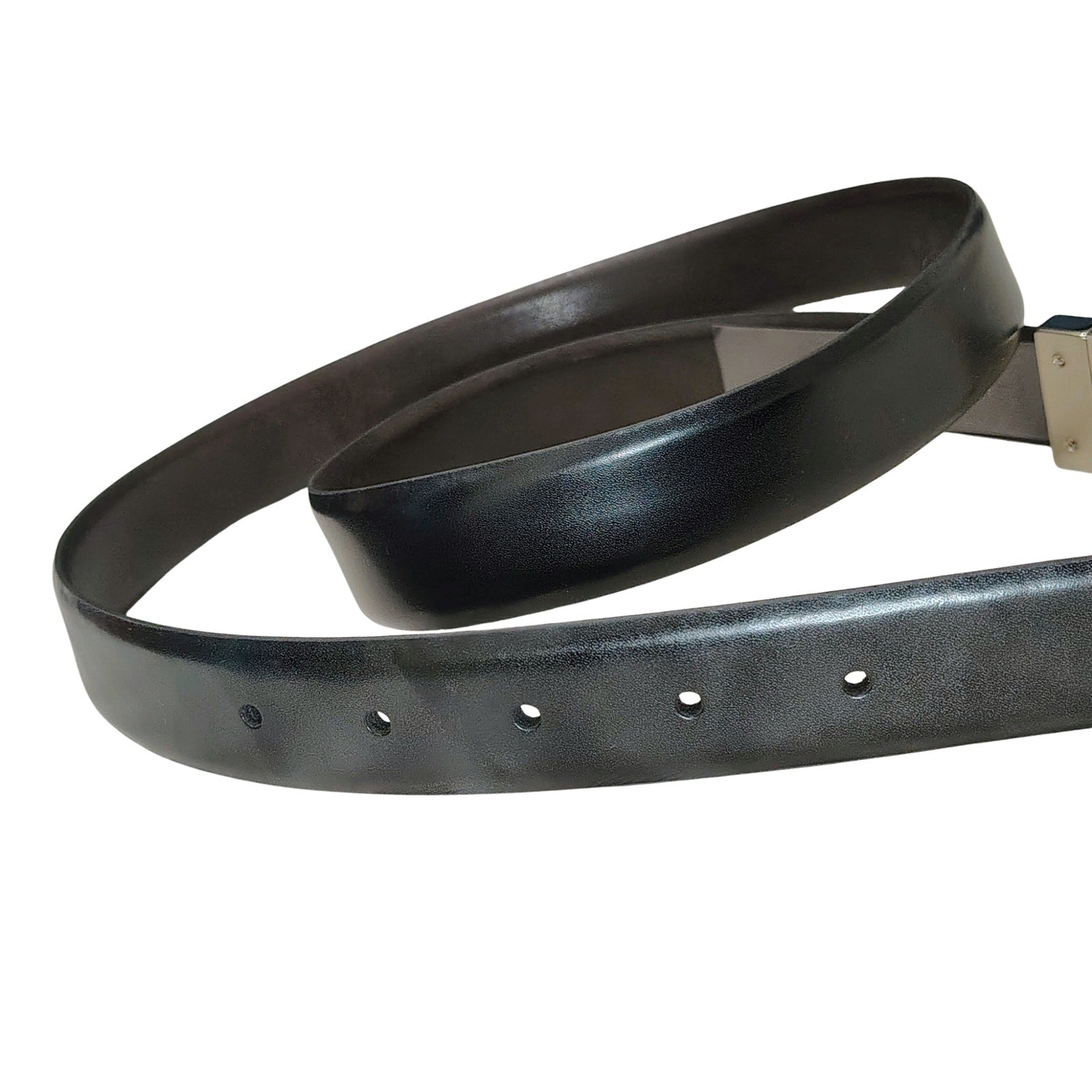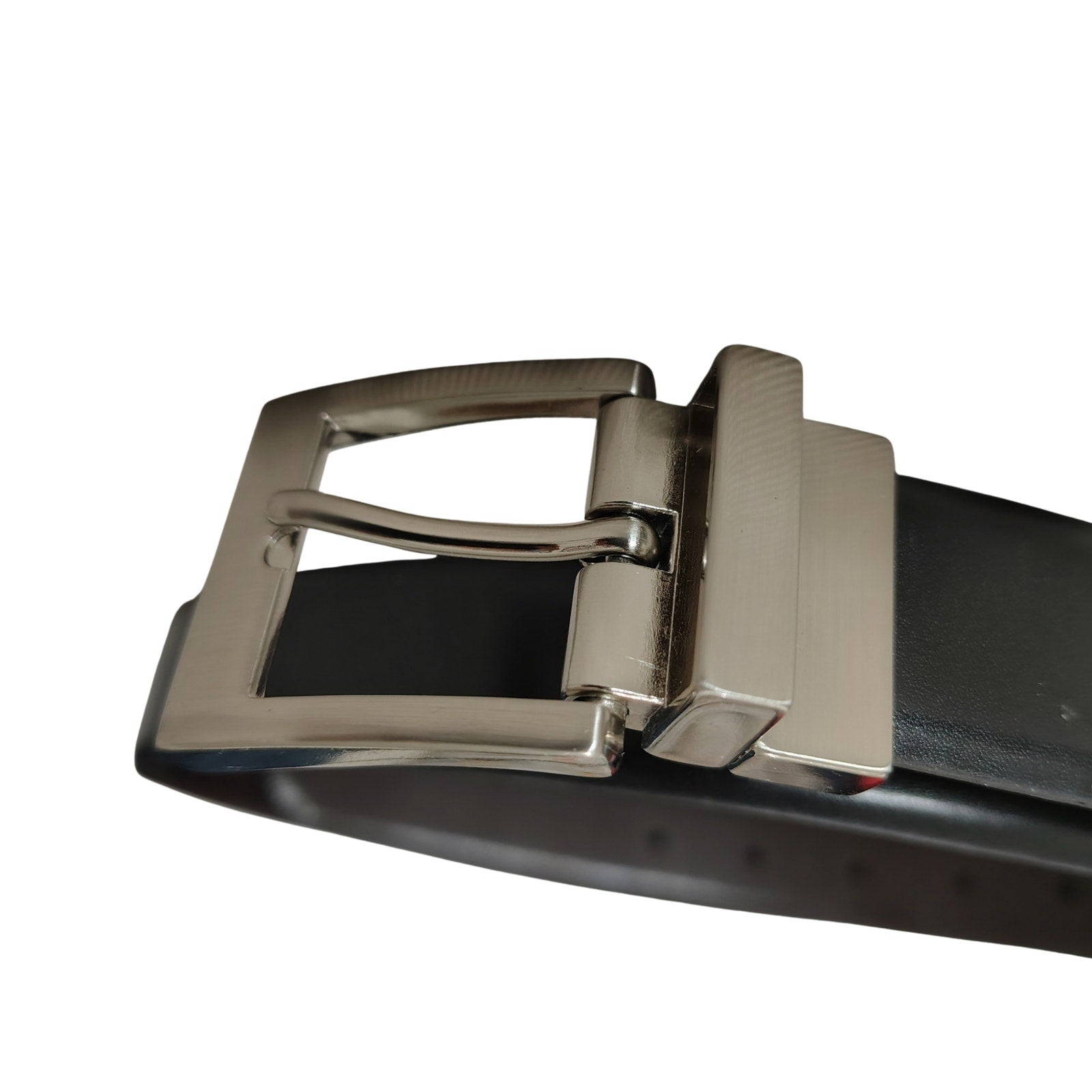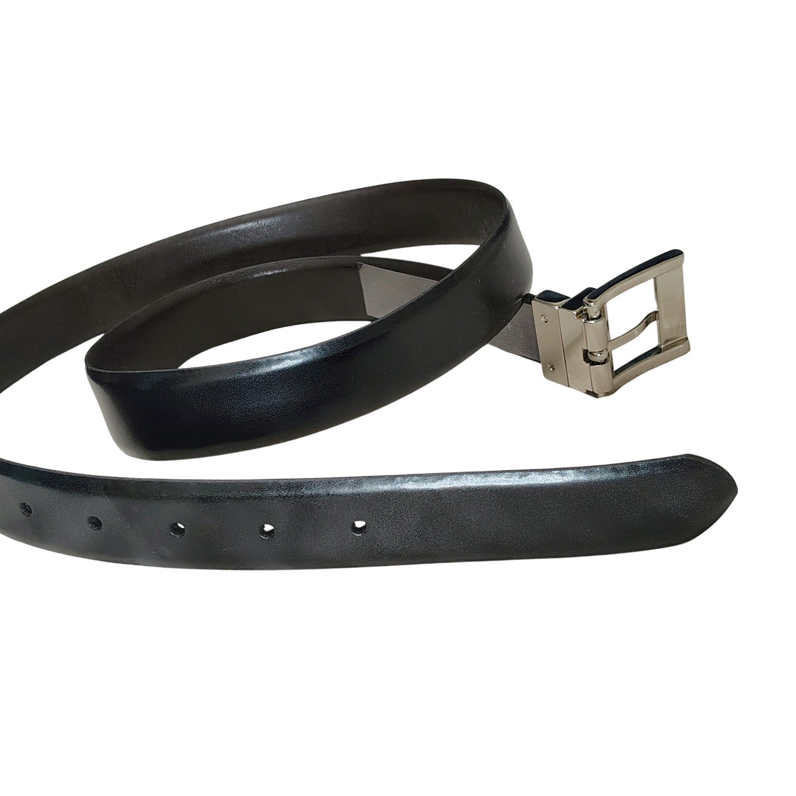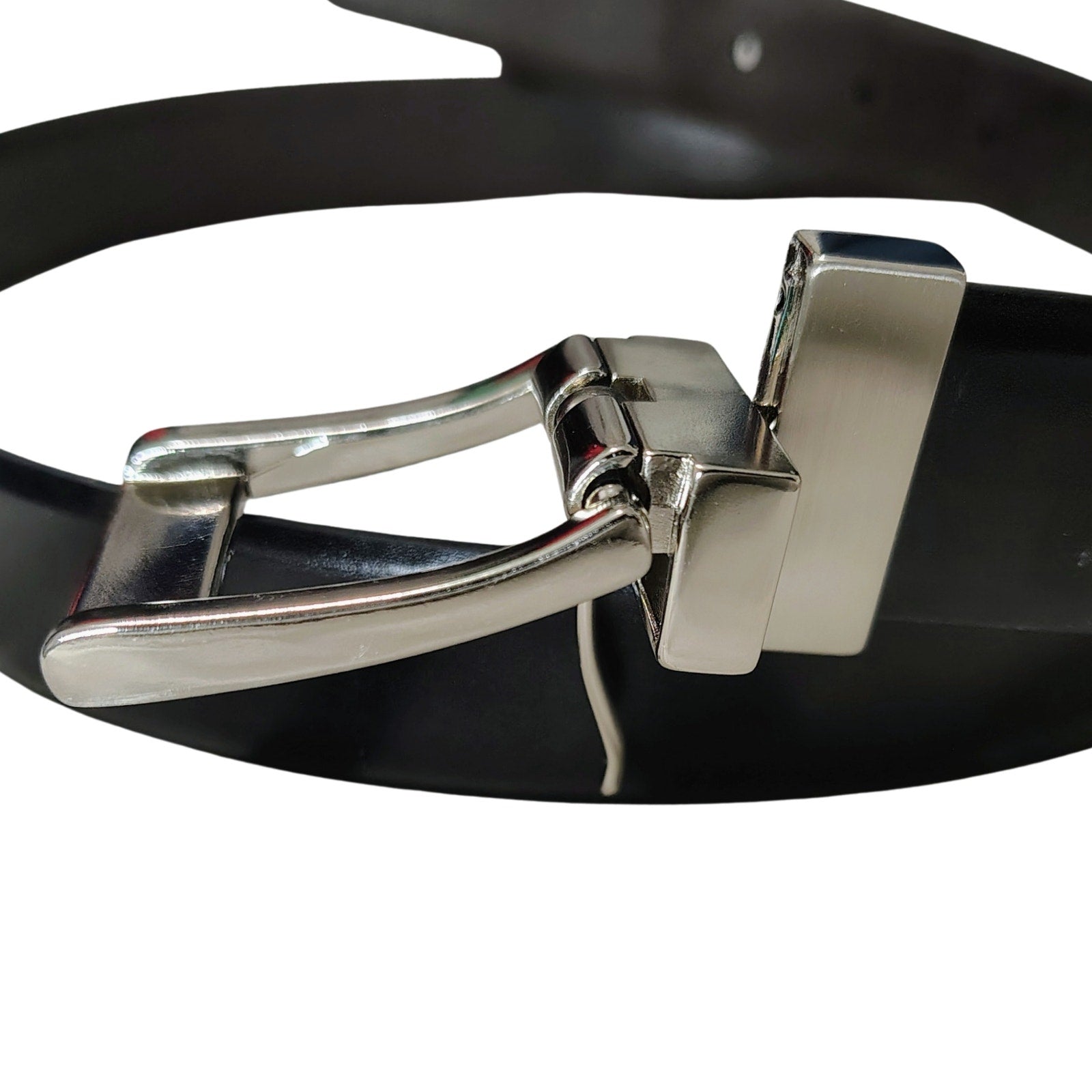 Leather Black Reversible Belt Brown Black Square Silver Buckle. Pull up on the buckle to flip and use the opposite side. Matte silver shine
