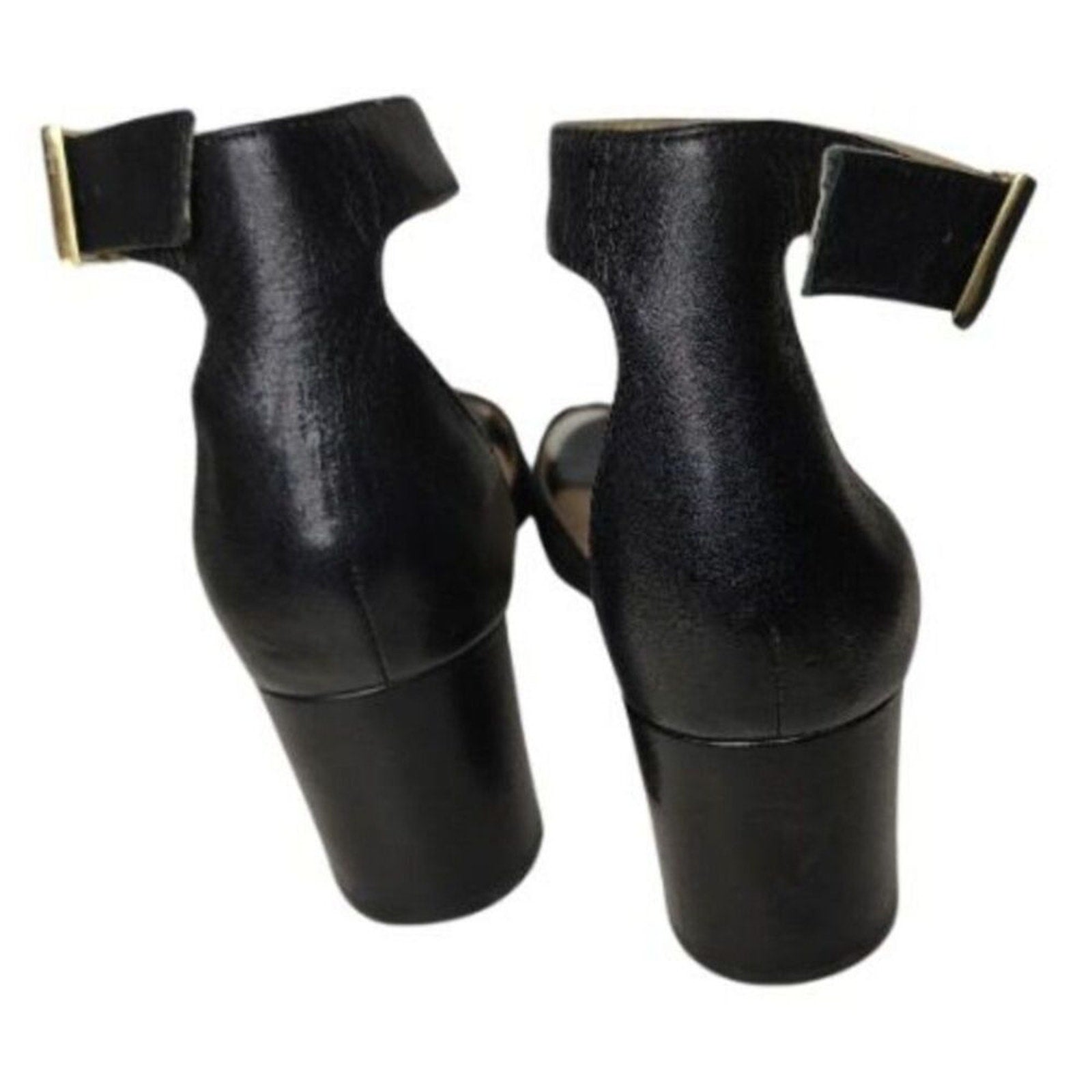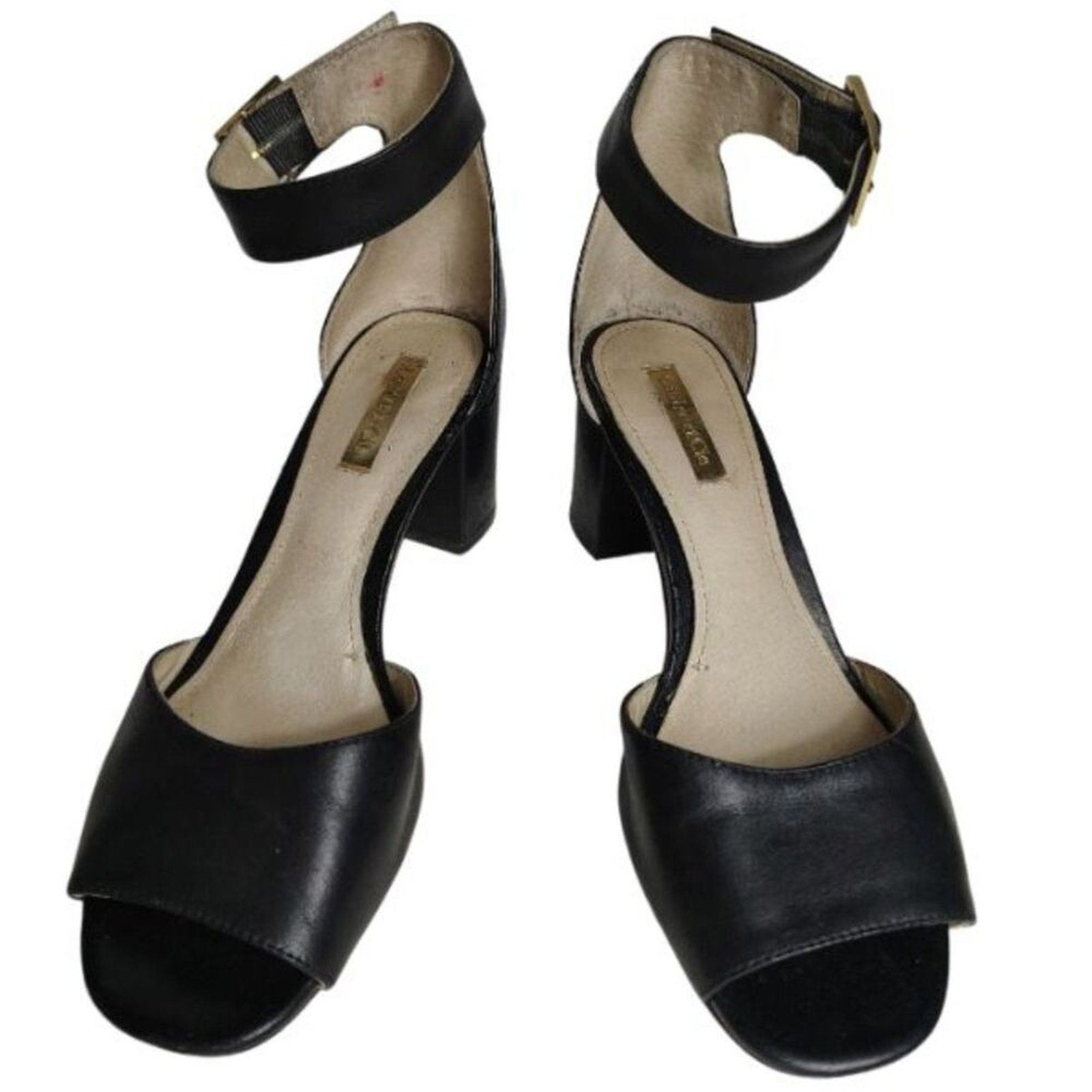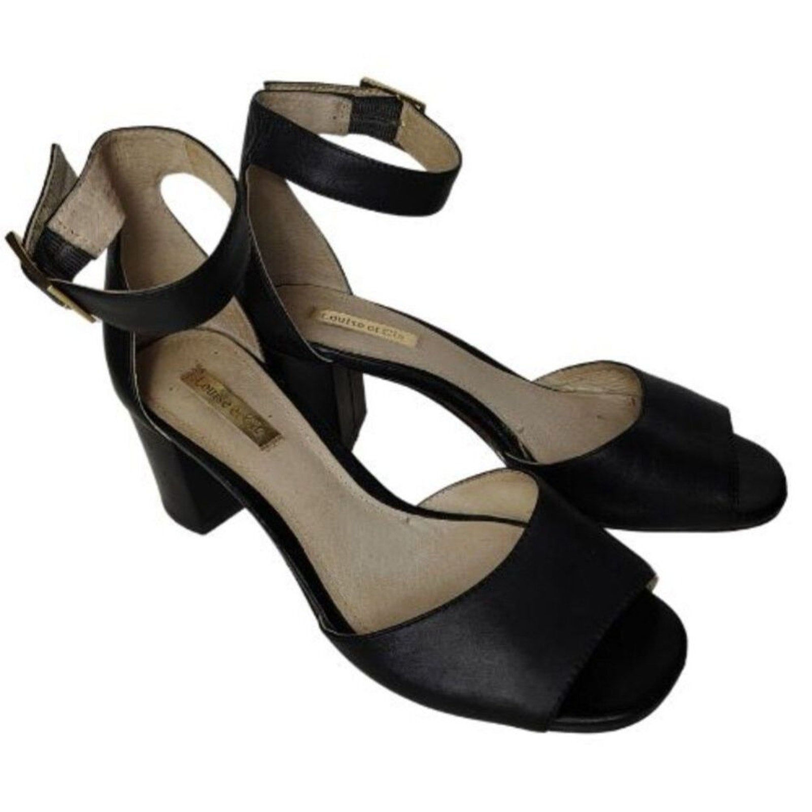 Louise et Cie Karisa Style Black Leather Ankle Strap Open Toe Block Heel Size 7M