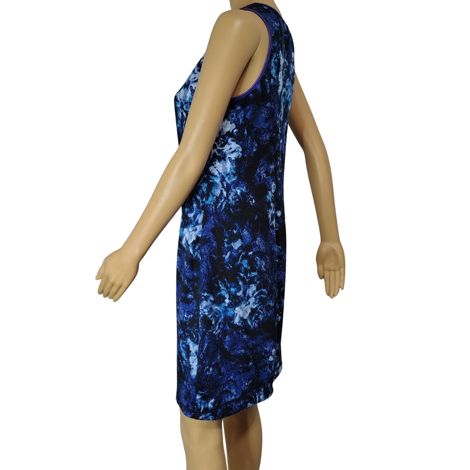 MARC NEW YORK Blue Purple Abstract Bodycon Sleeveless Midi Shift Dress Size 6