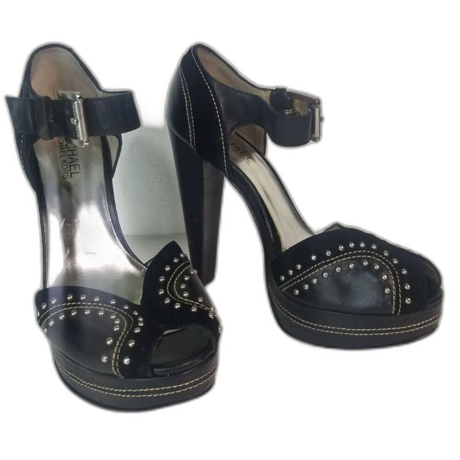 MICHAEL Michael Kors Peep Toe Black Platforms Heels Metal Detail Size 6.5