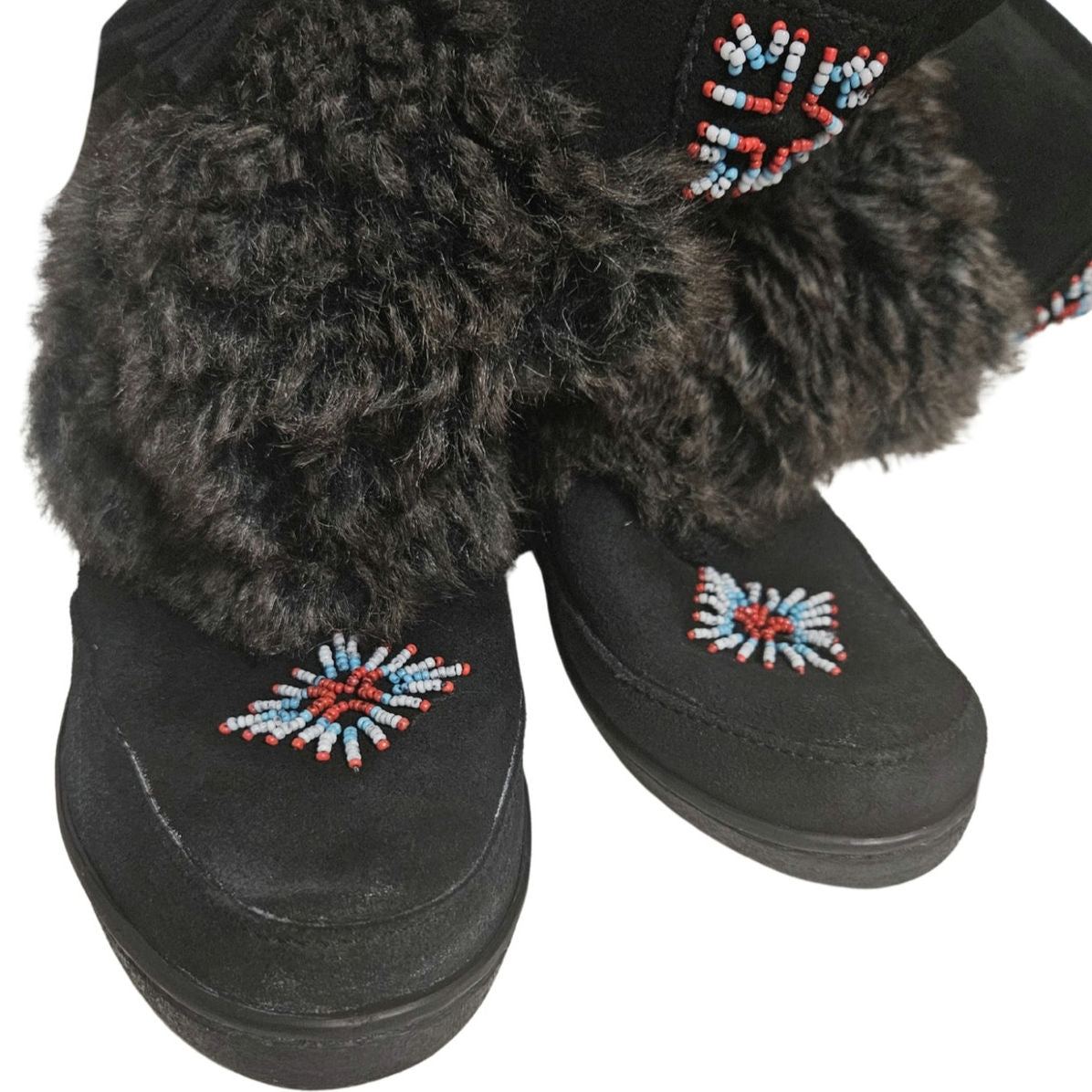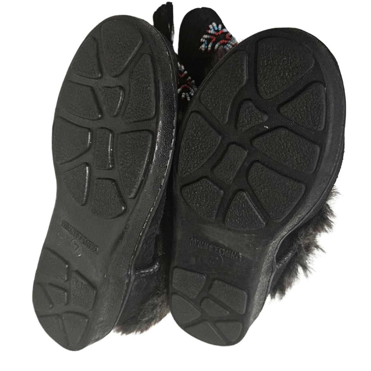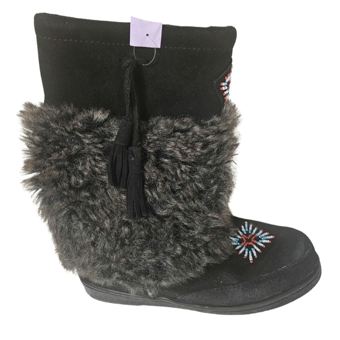 Minnetonka Mukluk Bead Detail Black Genuine Suede Leather Faux Fur Size 7 Womens