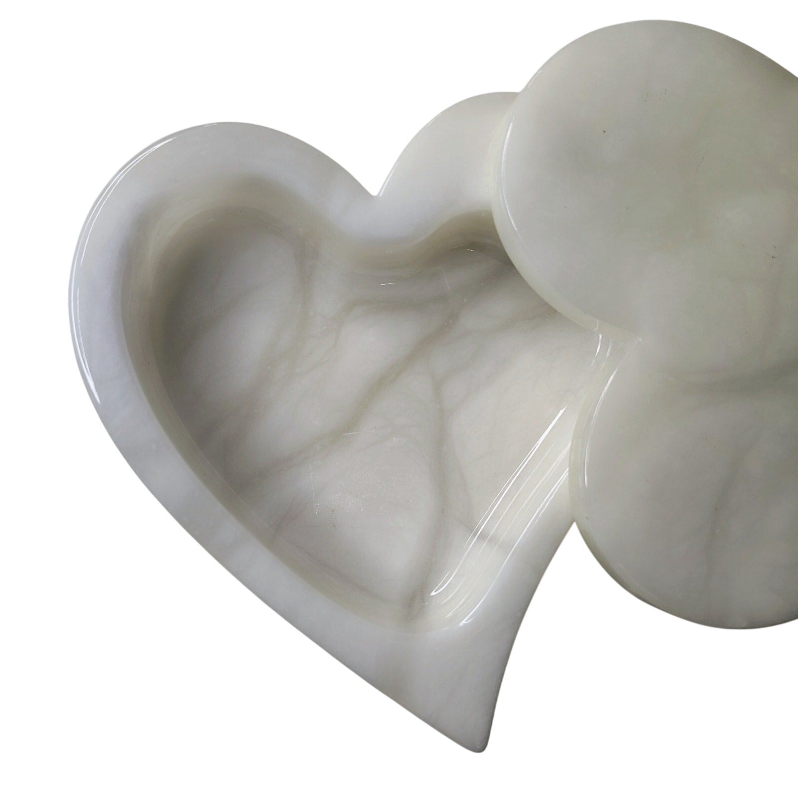 Off White Ducceschi Genuine Alabaster Trinket Dish Heart Keepsake Box Swivel Top