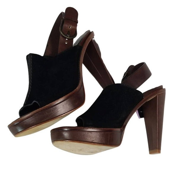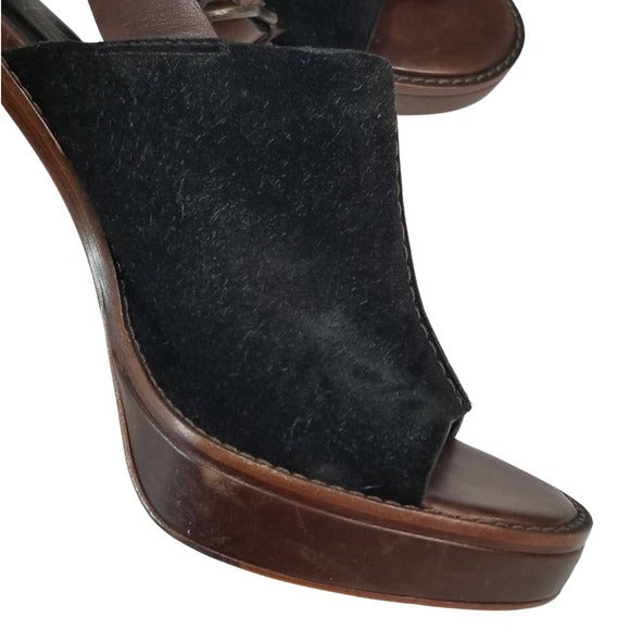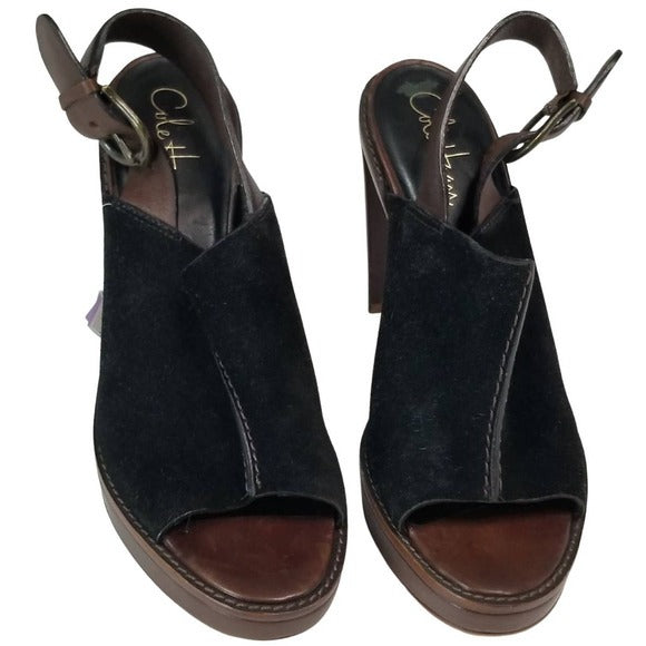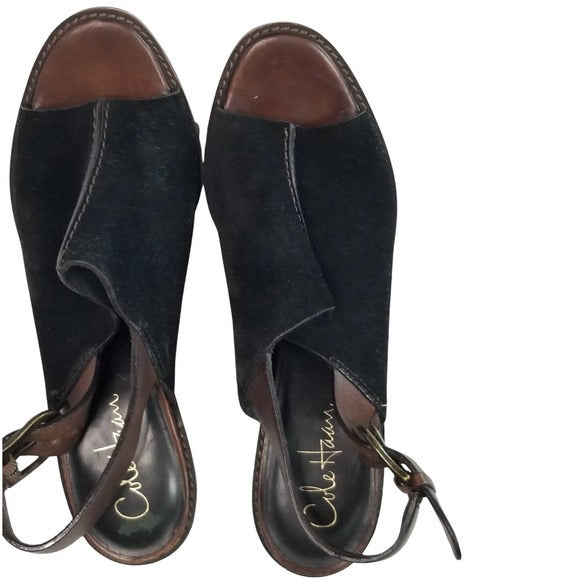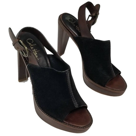 Open Toe Mule Wood Platform Nike Air Cole Haan Collab Black Suede Heels Size 10
