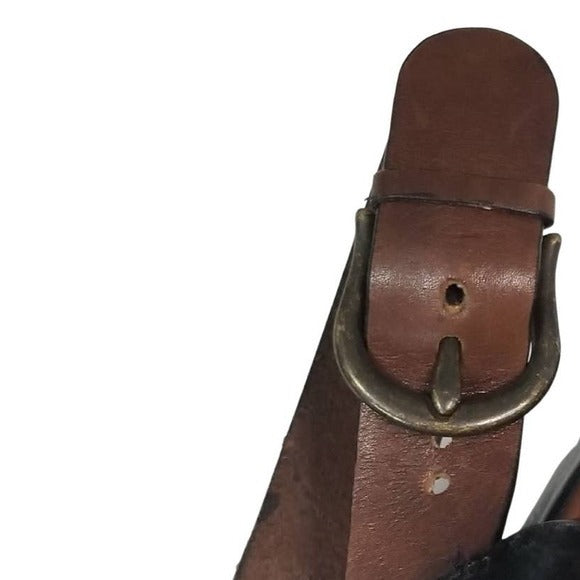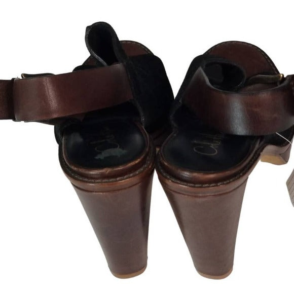 COLE HAAN Nike Air collaboration suede open toe sling back mule platforms. Wood heels and platform. Leather straps and bottoms.