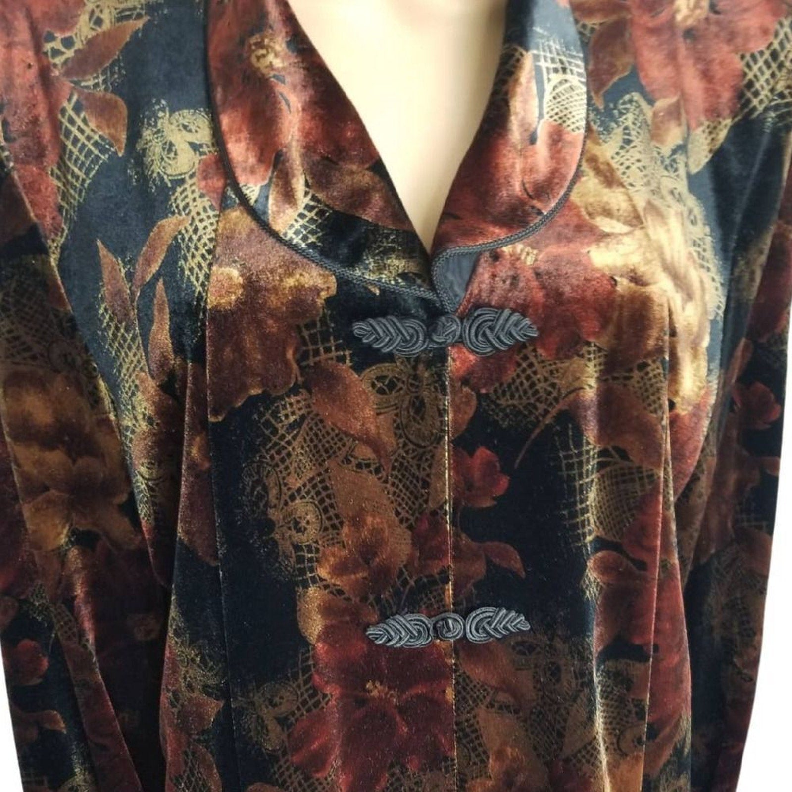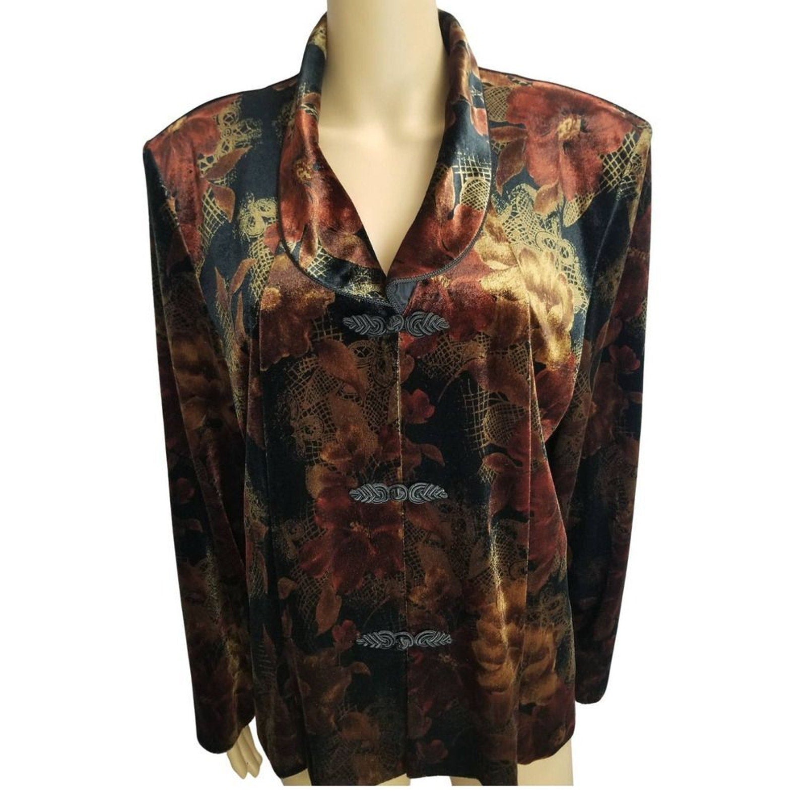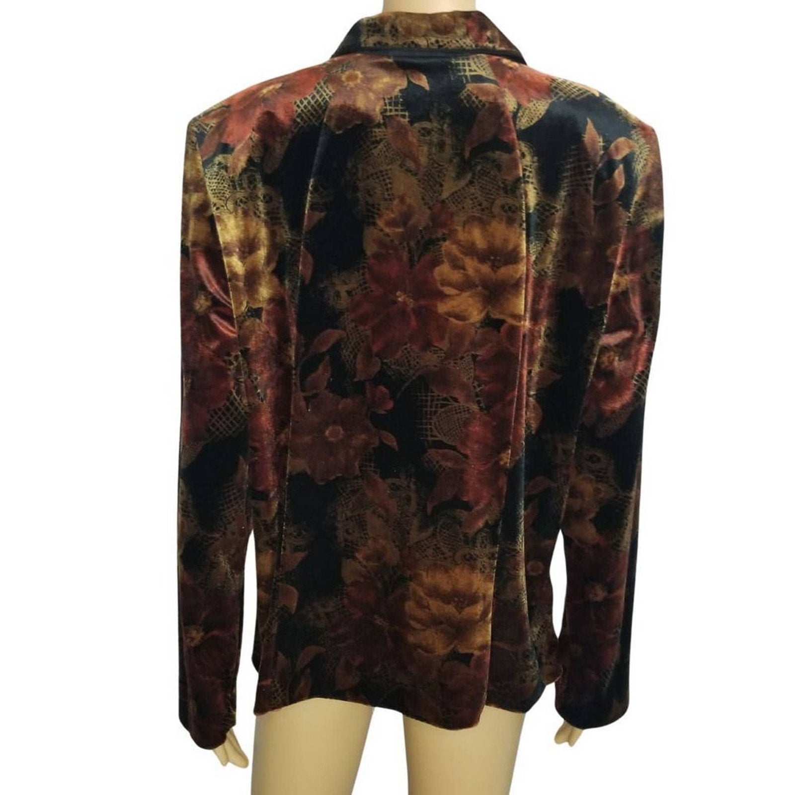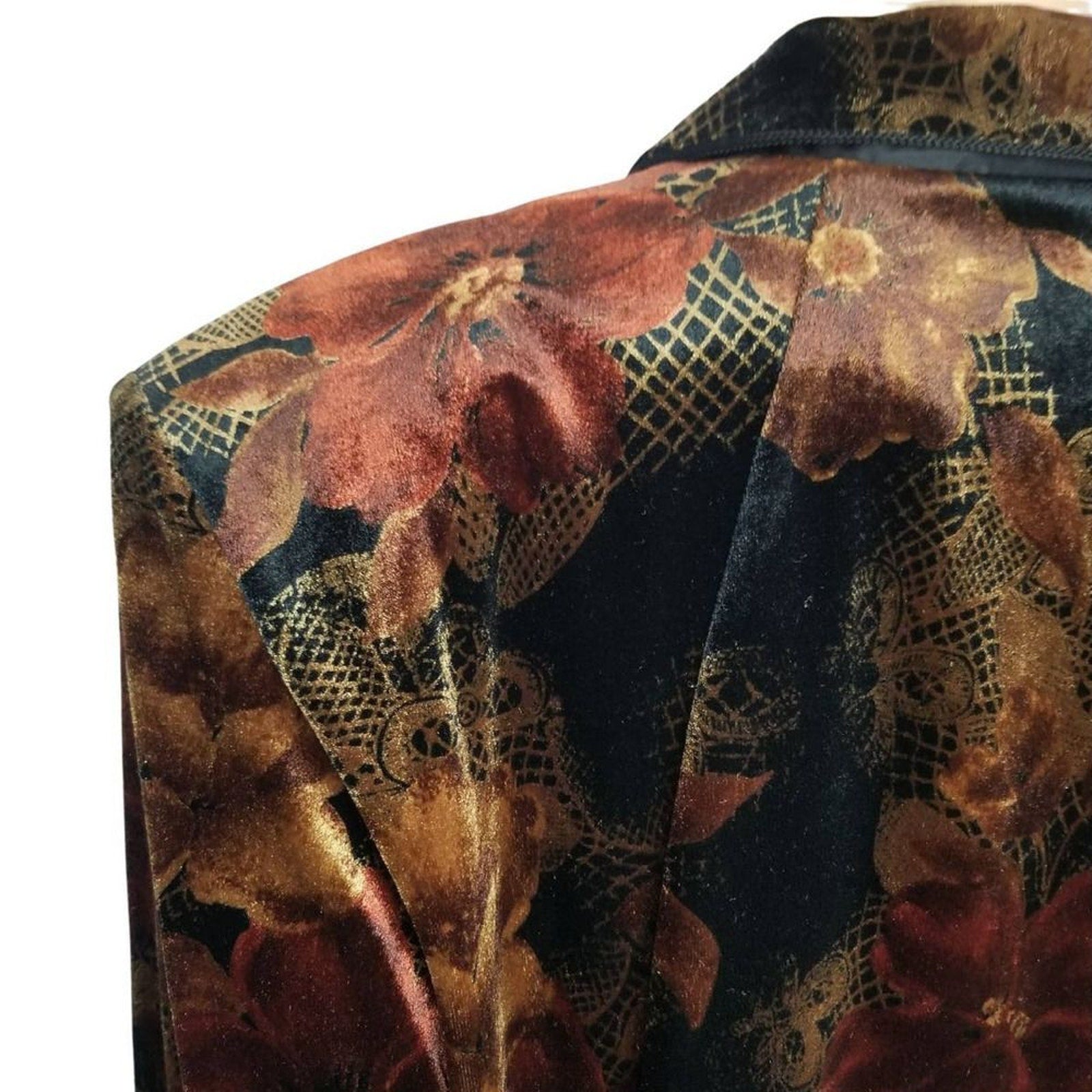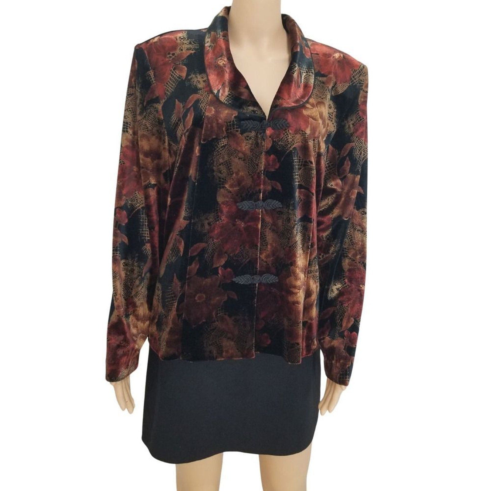 Stretch Velvet Floral Blazer Frog Closures Shoulder Pads Velour Soft Size 18
