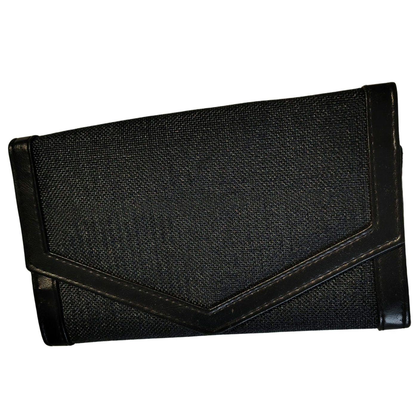 Textured Black Maxi Envelope Clutch 1970s Vintage Mr. Ralph Fold Over Snap Closure Bag. Half inch stitched faux leather edging. Zipper protected inside mini pocket. Lined in black fabric.