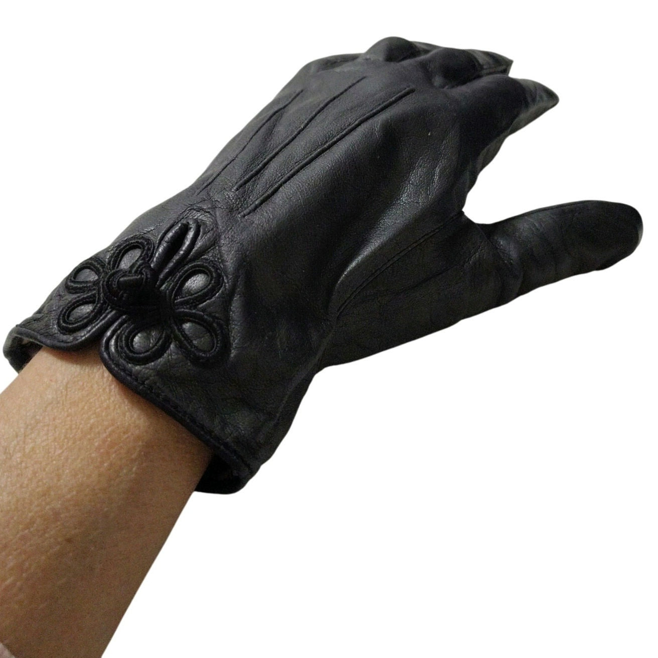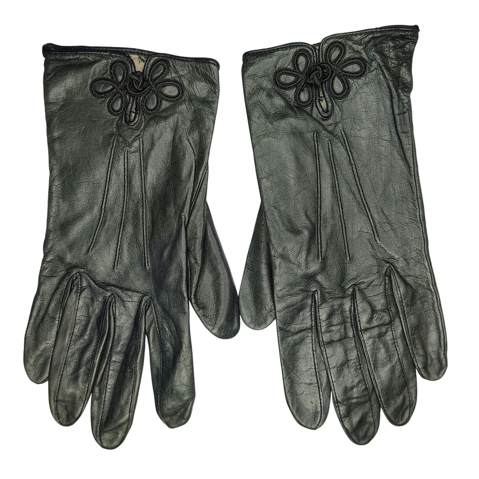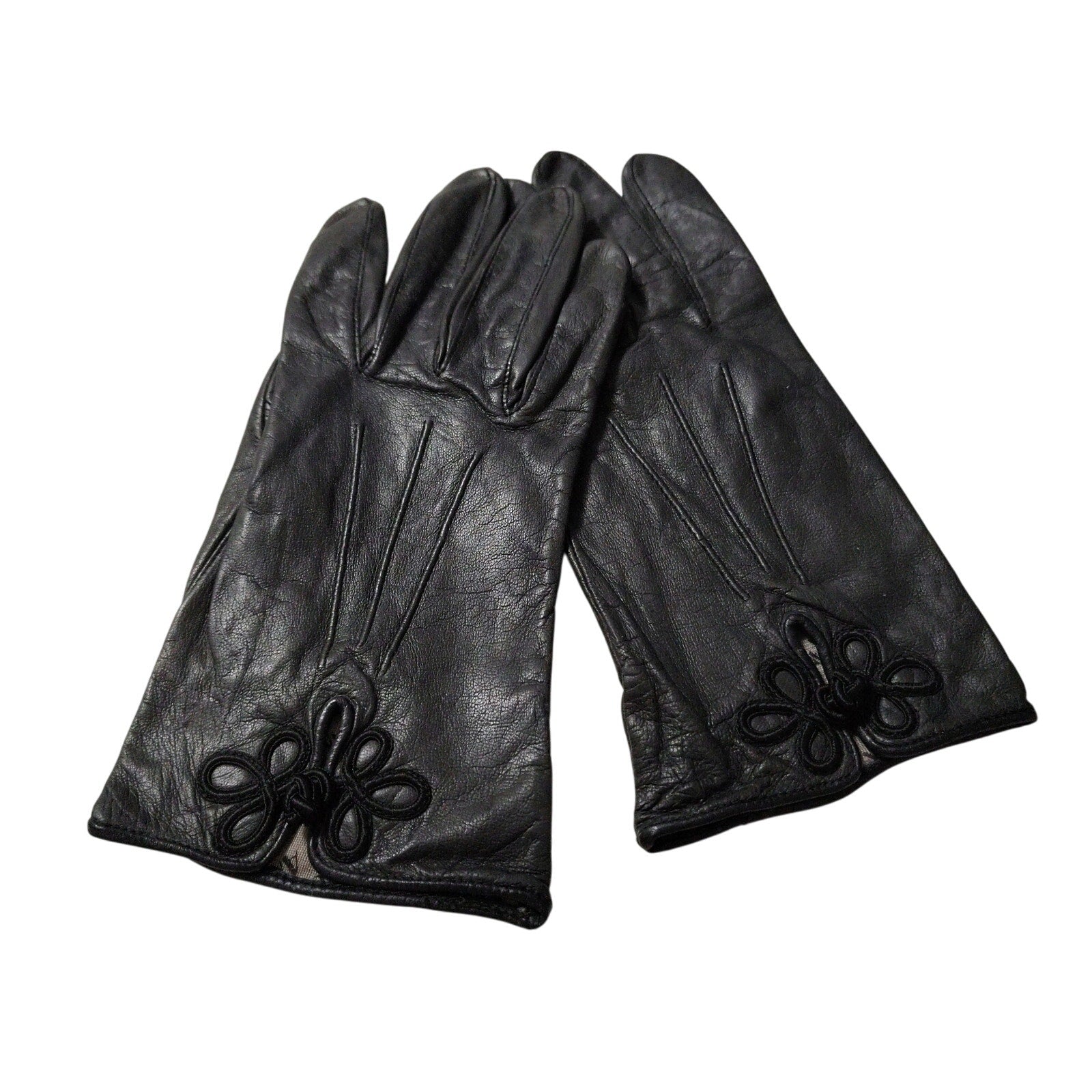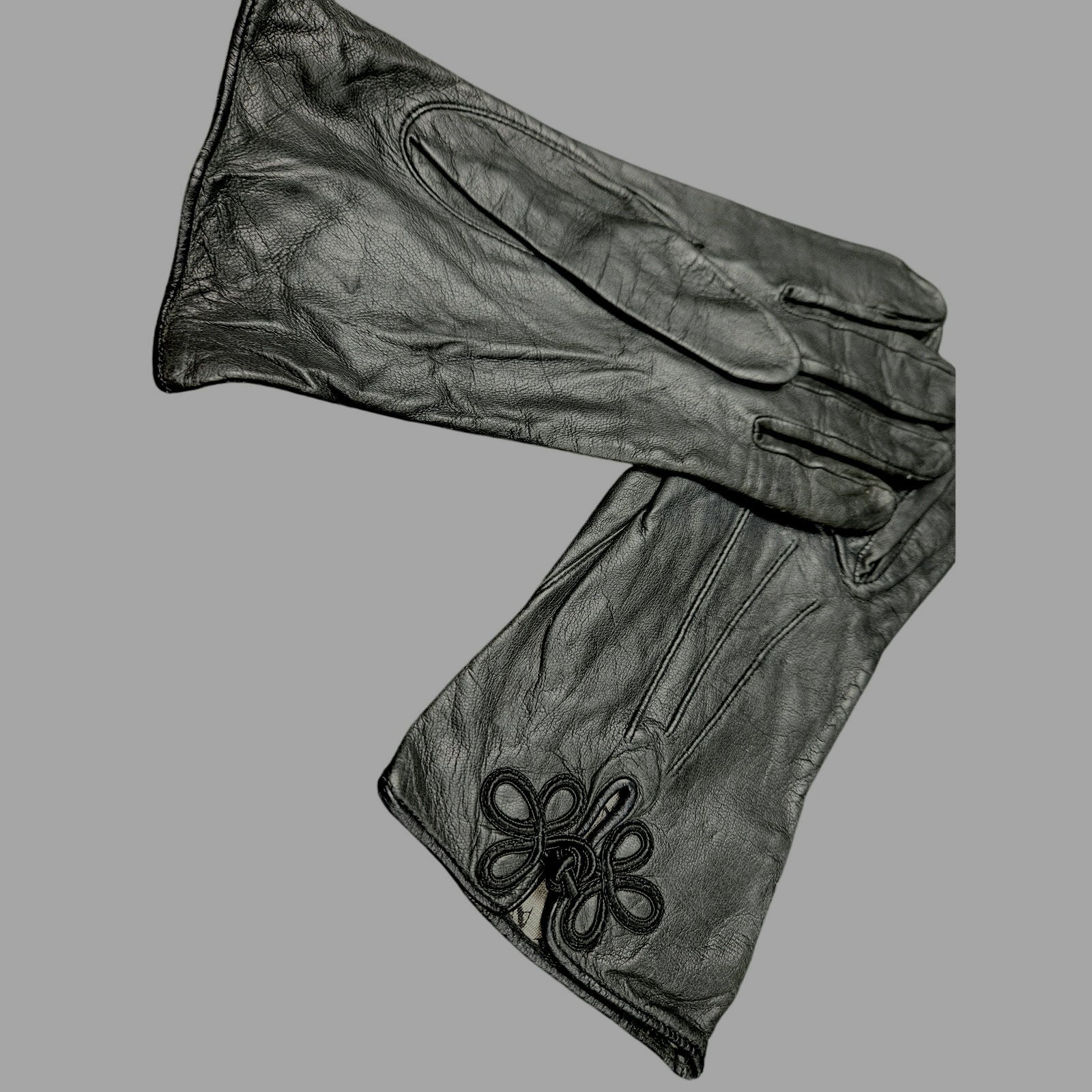 Vintage Anne Klein Aris Black Soft Leather Frog Closure Gloves Size Large Womens
