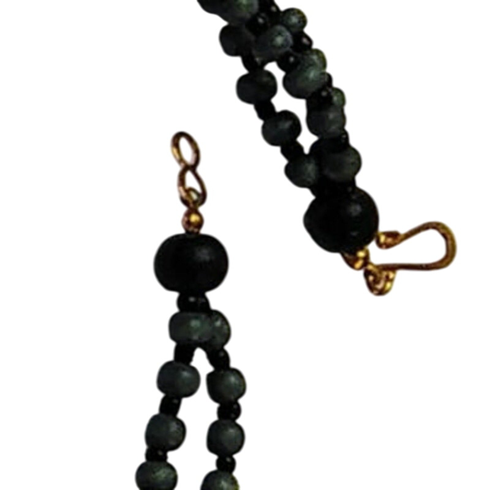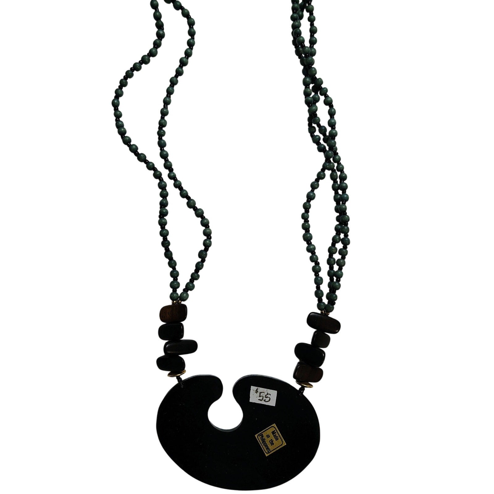 Vintage Blue Black Inlay Shell Beaded Lacquered Necklace Adjustable Chain Link