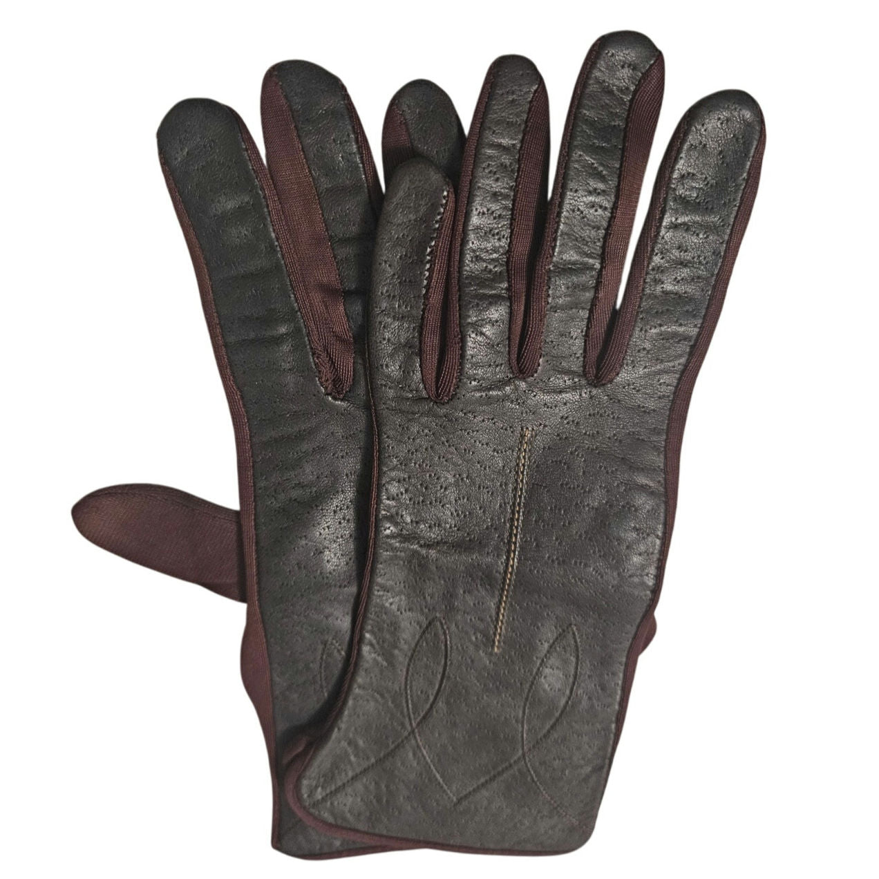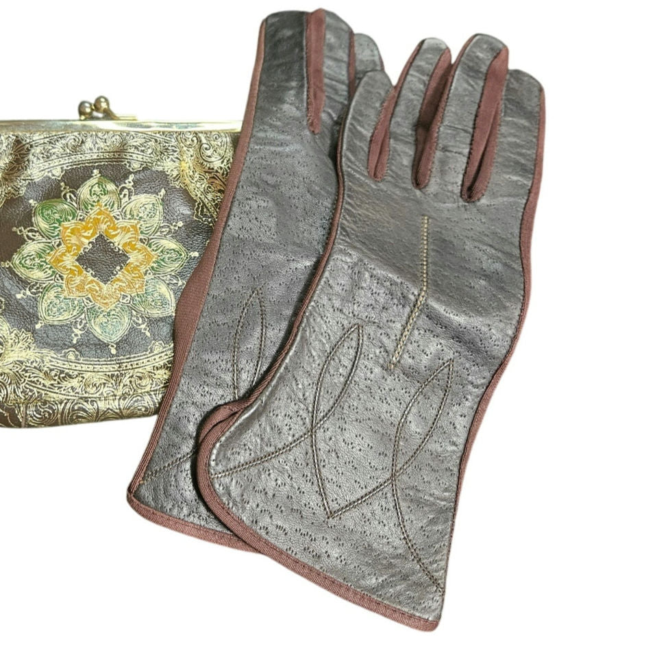 Vintage Brown Leather Top Gloves Polyester Bottom Gently Used Size 7 Womens