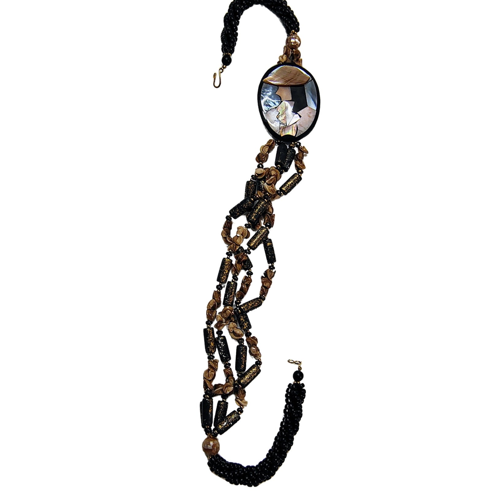 Vintage Layered Lacquered Shell Cameo Black Pink Beaded Statement Necklace