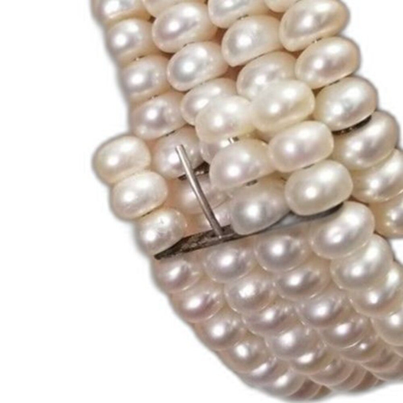 Bridal Set Vintage Pearl Gems Choker Four Strand Memory Wire Matching Bracelet