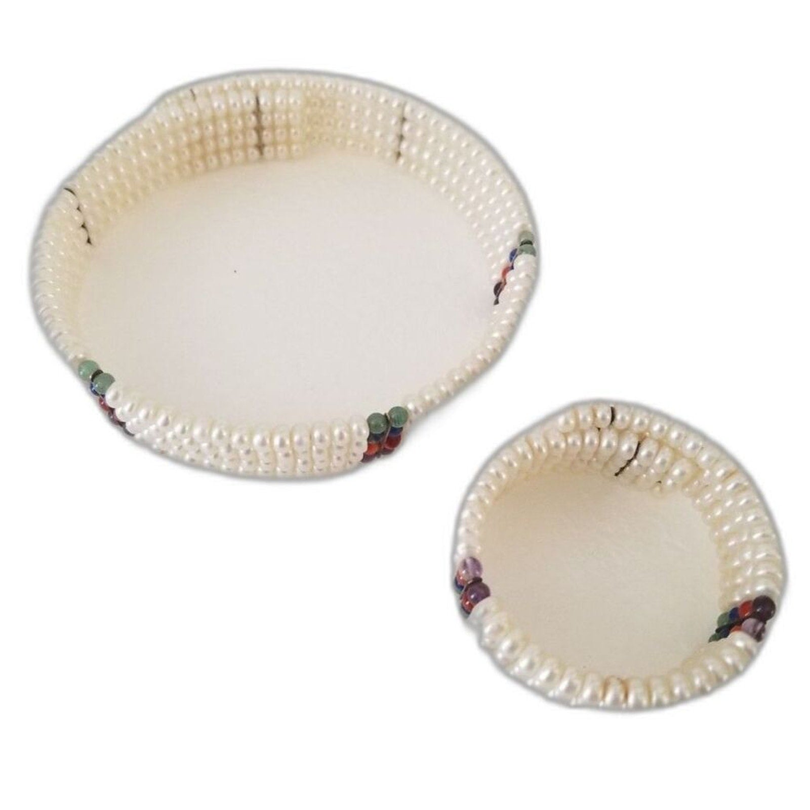 Vintage Pearl Gems Choker Four Strand Memory Wire Matching Bracelet Bridal Set