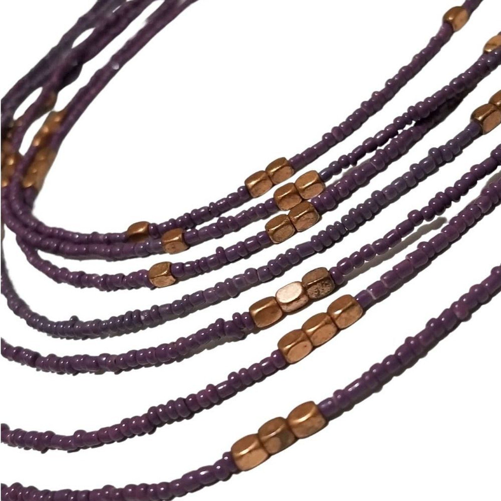 VINTAGE Seven Strand Layered Statement Necklace Purple + Square Copper Beads