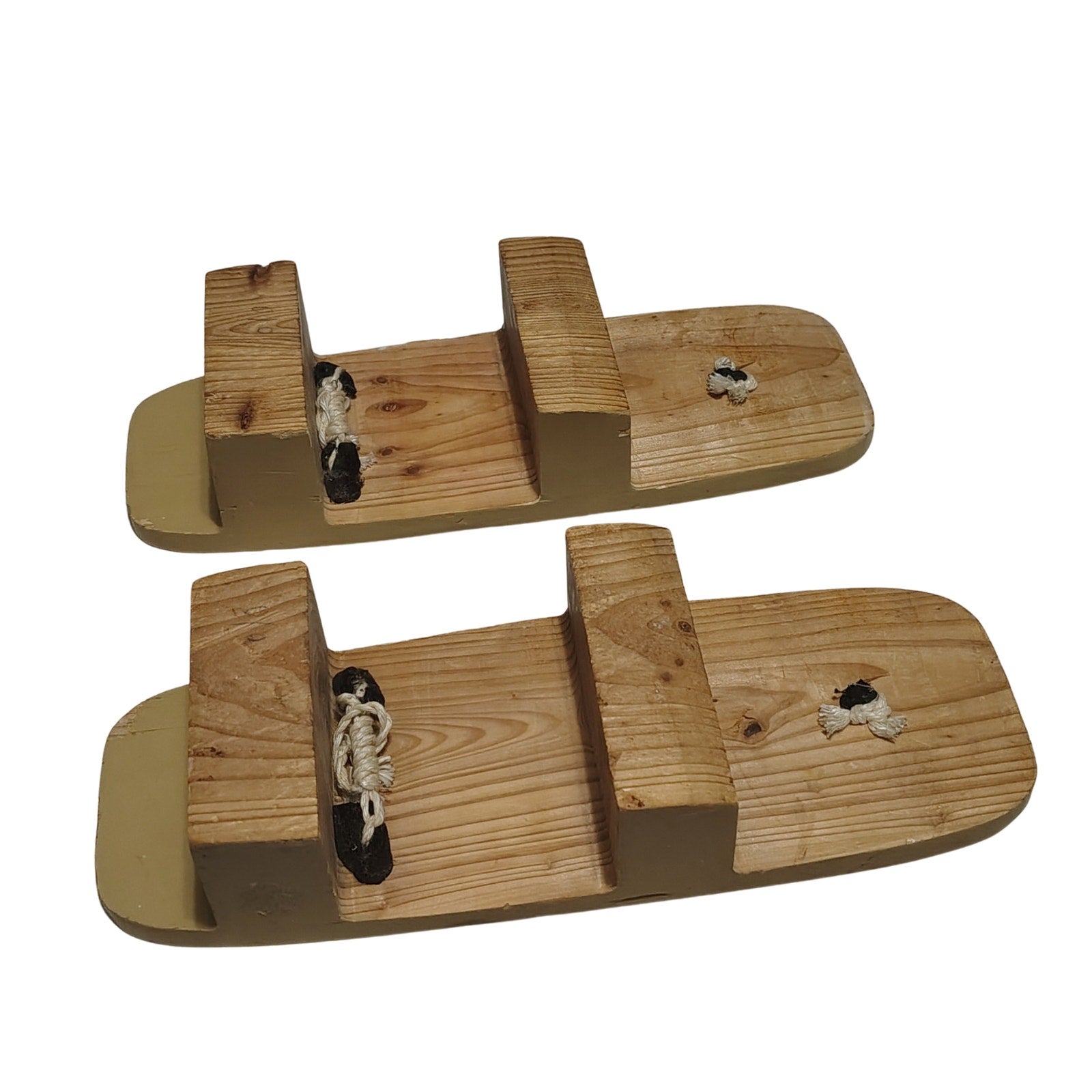 Traditional Japanese Footwear Geta Clogs Sandals. Velvet thong design. Two elevated teeth keep feet lifted off the ground.