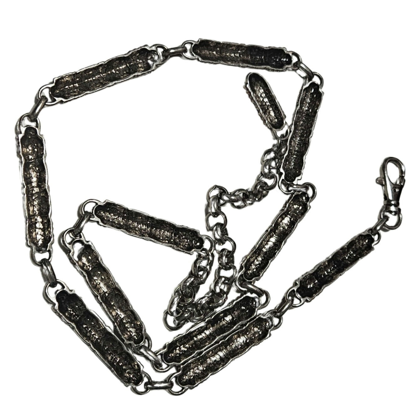 Vintage Woven Metal Design Chain Links Adjustable Heavyweight Belt Silver Tone