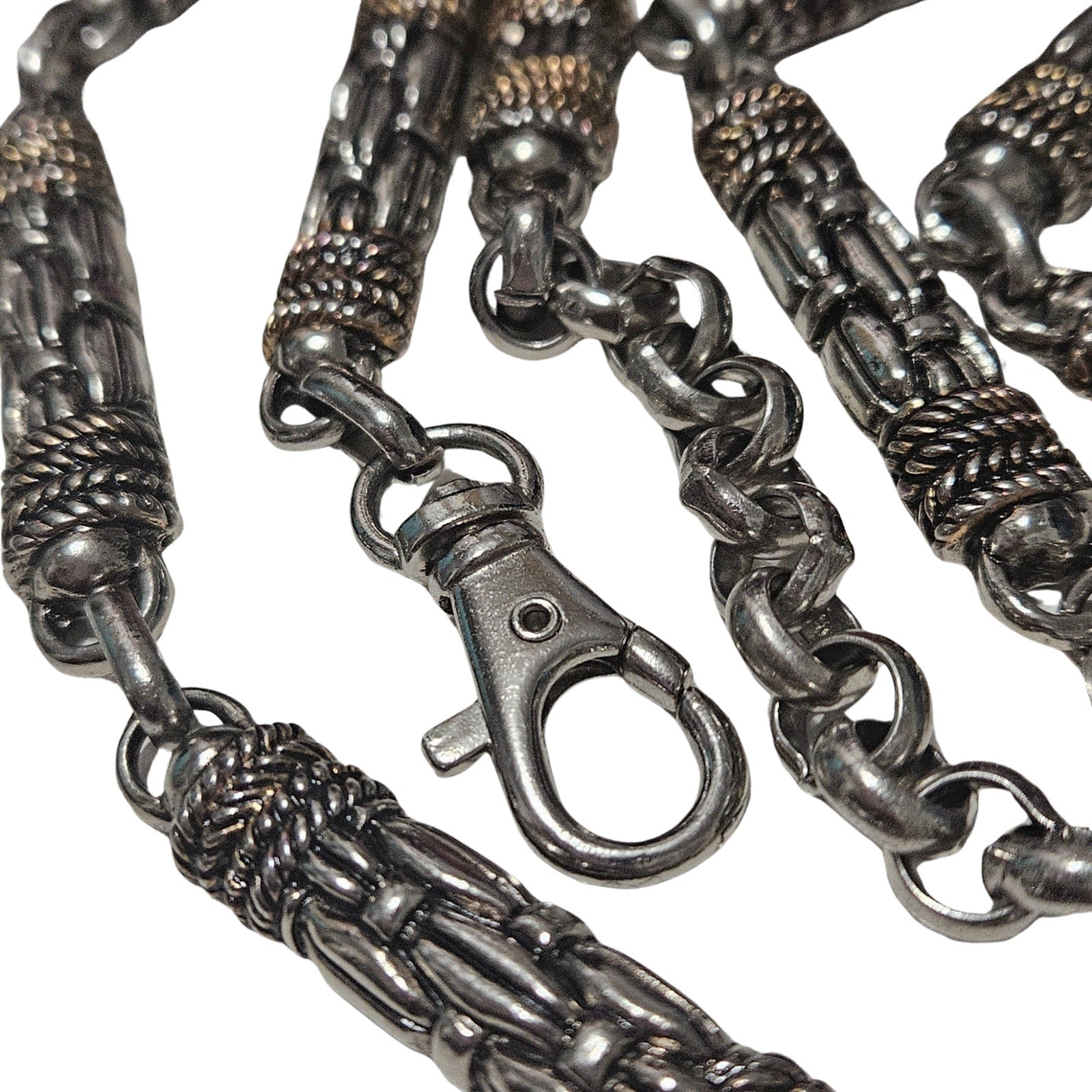 Vintage Woven Metal Design Chain Links Adjustable Heavyweight Belt Silver Tone. Lobster claw clasp. Tied ends designs.