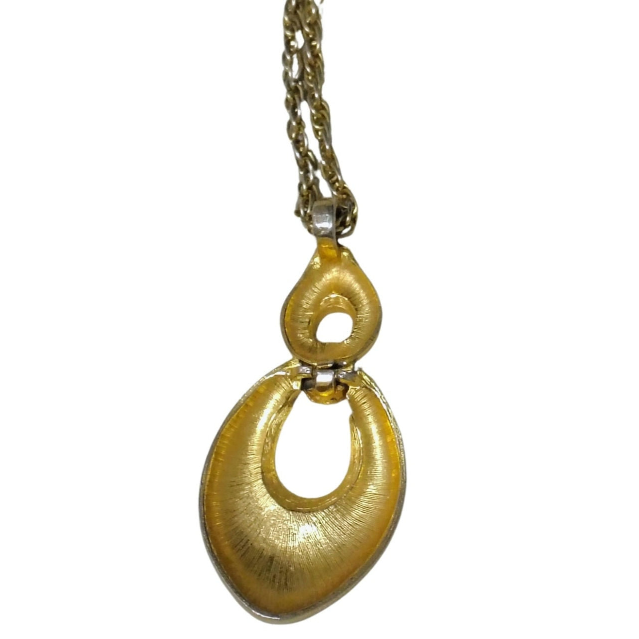 White Two Piece Enamel Dangling Pendant Gold Tone Round Chain Link Necklace. Tear drop design on both pieces. Secured with a gold round clip.