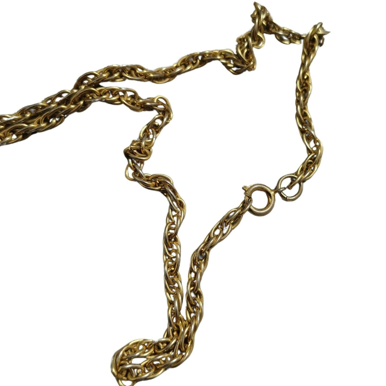 White Two Piece Enamel Dangling Pendant Gold Tone Round Chain Link Necklace